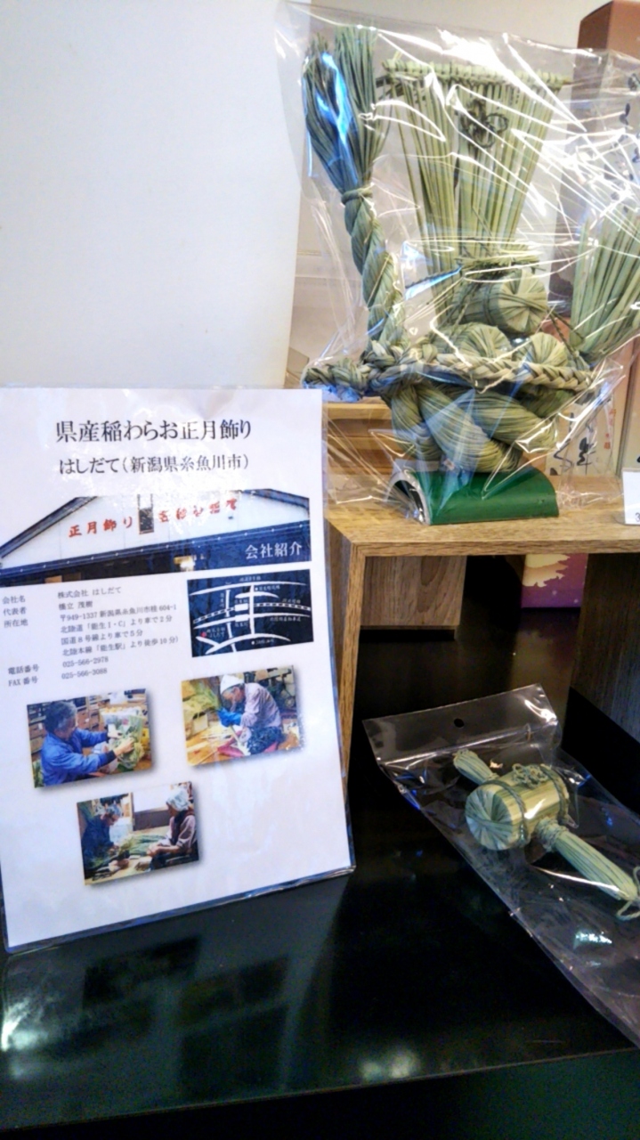 お正月に向けて、「県産稲わらお正月飾り」やお餅などのお正月用品が販売されており見ていて楽しいです。