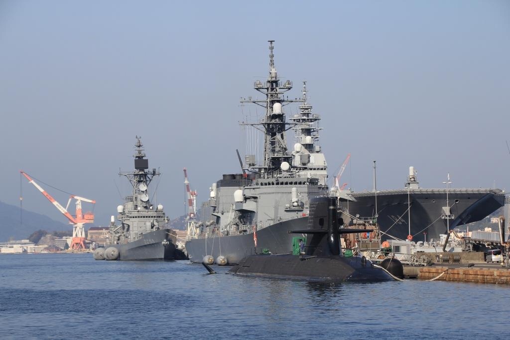 海の上に潜水艦が並んでいるんですよ。