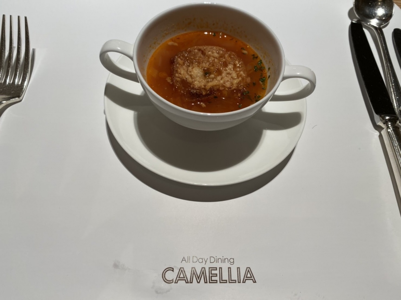 福岡のホテルオークラにあるオールデイダイニングカメリア。メニューは夜はコースが中心になるあたり、神戸や東京よりもちょっとシックで、インテリアも重厚さがありました。サービスはそっけない感じでしたが、しめるところはしめていて食事も安心してできました。