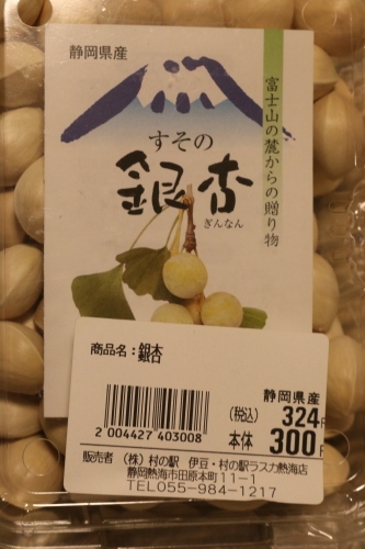 訪れたのが夕方だったゆえ、野菜などがすでに売り切れだったのですが、今回銀杏を買ってみました。