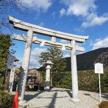 駐車場から大鳥居に行く途中の川の堤防近くにあります。大鳥居への参道に表示が出ているのでわかりやすいですが、とても小さな社でした。社殿が山側に移転したので、取り残されたような感じでした。産守りは本宮大社の方と看板が出ていました。