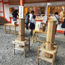 「日本一のおみくじ」と書かれた木枠の中に、大きなおみくじ箱がありました。とても大きな木箱を振ると、普通のおみくじと同じような棒、棒も巨大です、が出てきます。隣には巨木の下をくぐる胎内くぐりもありました。