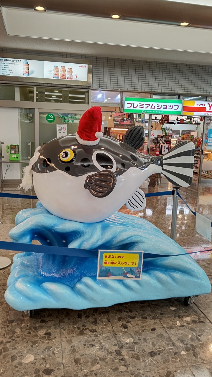 1階の出入口には、ふぐがサンタ帽かぶってかわいかったです。