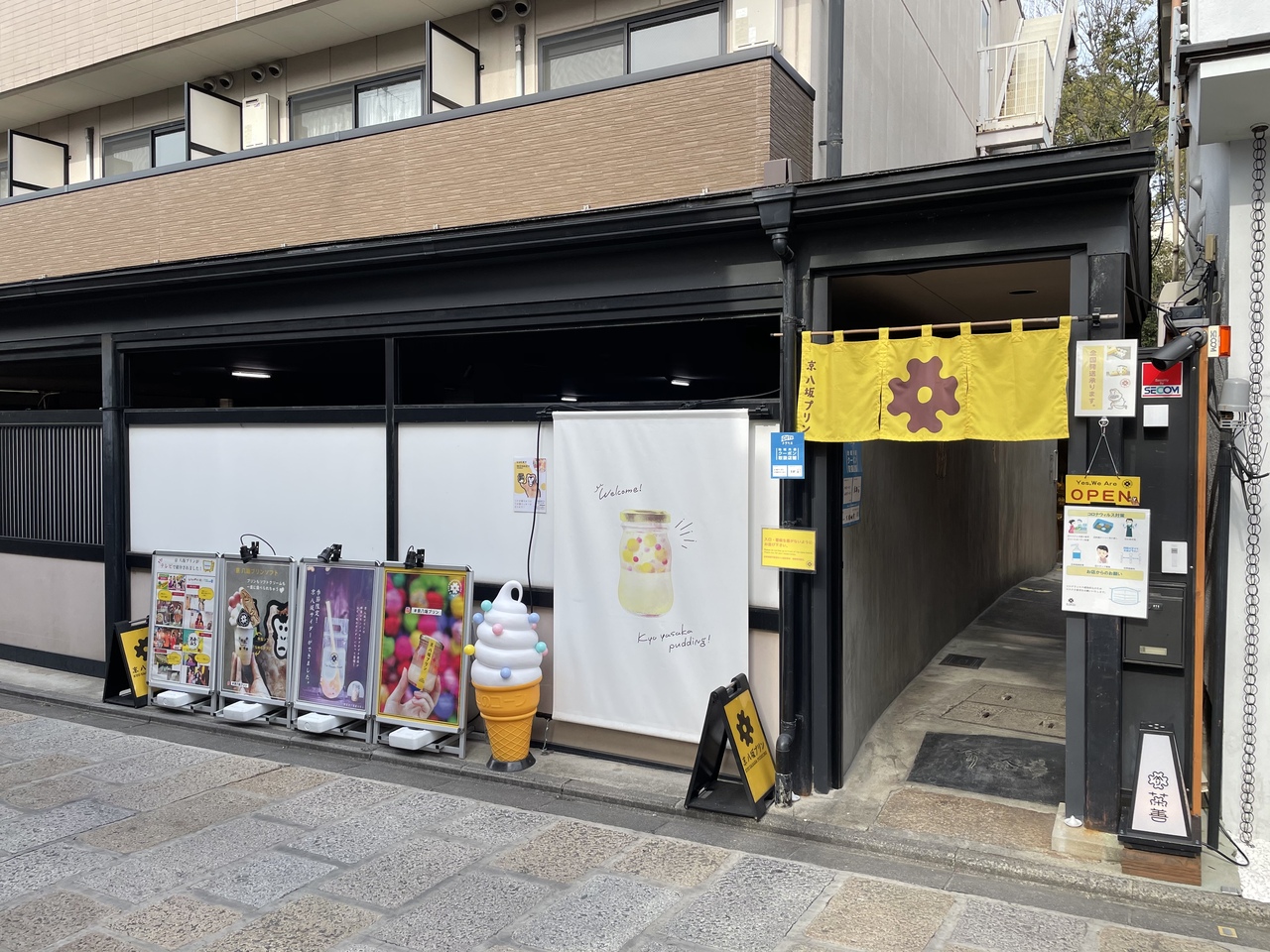 法観寺の八坂の塔を少し下ったところにある、プリン屋さん。アイスクリームなど、おしゃれなデザートがテイクアウトできるお店です。まだできて1年も経っていないのでは…。オリジナルの「京 八坂プリン」と「ほうじ茶黒豆」の2種類をいただきました。店内では食べるスペースがないので、ご注意ください。