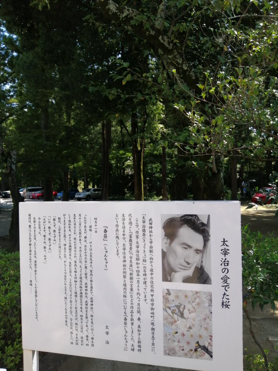 作家の太宰治が作品の中で記したという桜の木が、境内にありました。