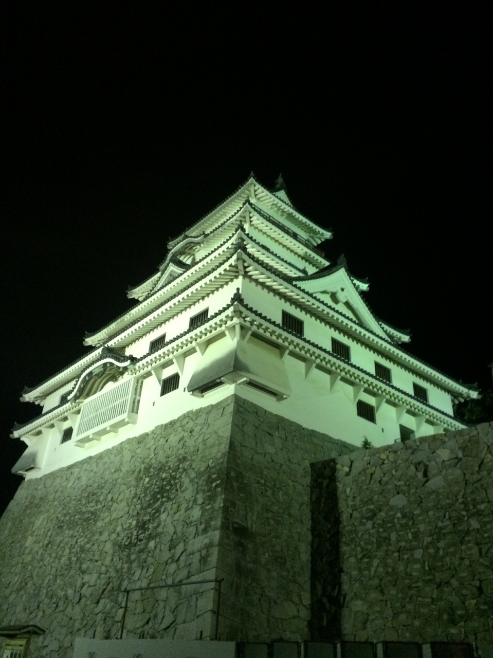 この唐津城の周りのお堀も、有名です。ただし、堀はすでに夜になると暗くてほとんど見えませんでした。ライトアップされているのは、唐津城の本丸と周りの城壁みたいな部分のみになります。城の威厳を見る事ができました