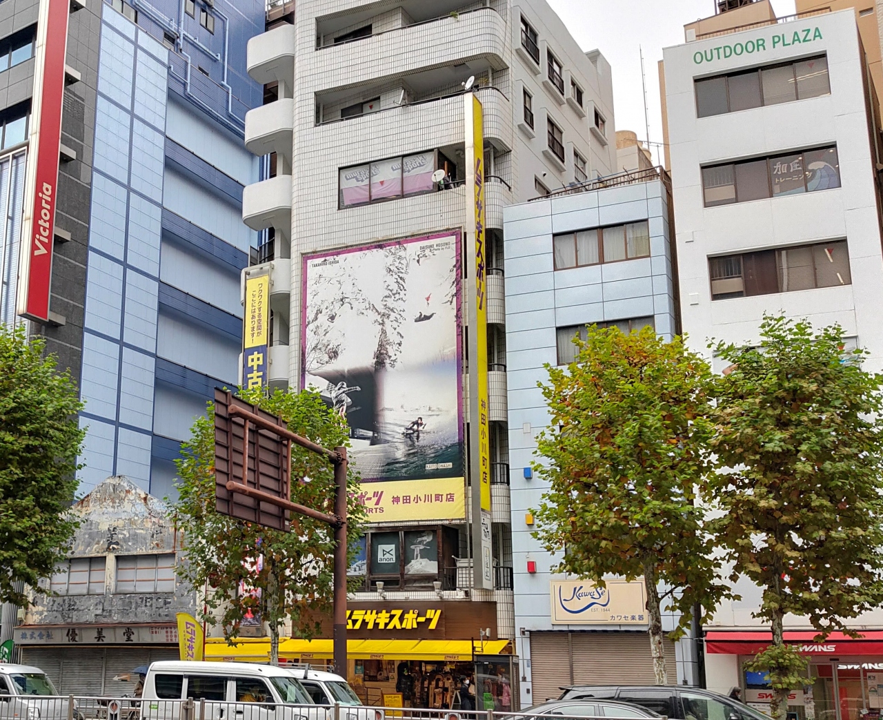 小川町の交差点から靖国通り沿いに神保町の交差点あたりまでにスポーツ用品店が集中して点在しています。