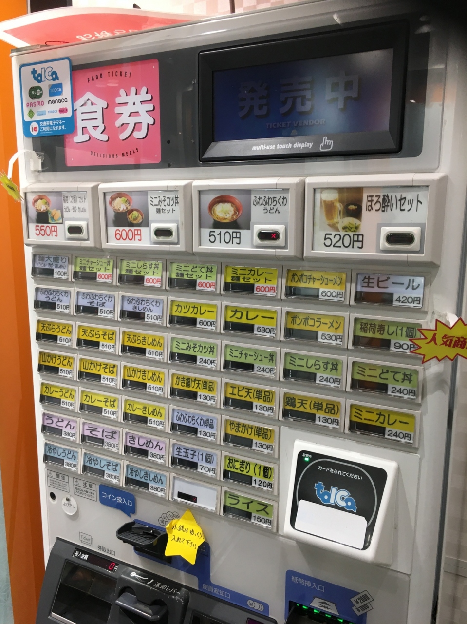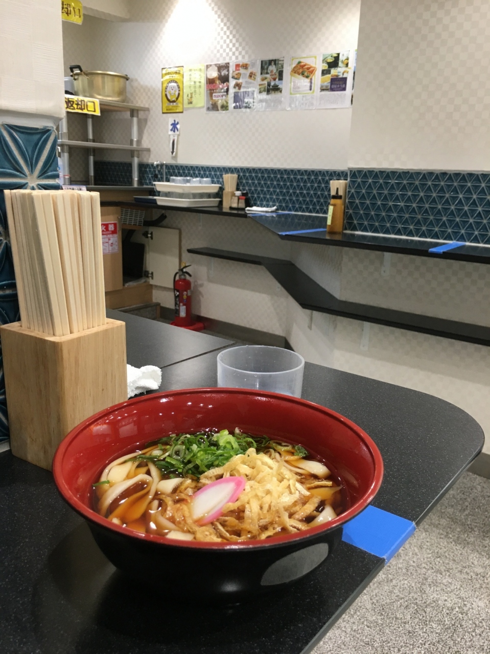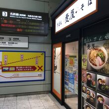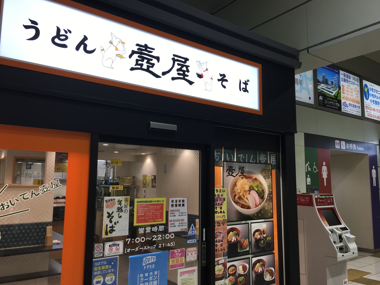 駅内のコンコース沿いにあり、切符がなくても構外からも入ることが出来る立ち食い専門店です。交通系の電子マネーが利用出来、値段は立ち食い店としては少し高めの値段設定でした。きしめん380円を食べました。汁が濃いめの柔らかい麺で油揚げが結構入っていました。味は普通です。