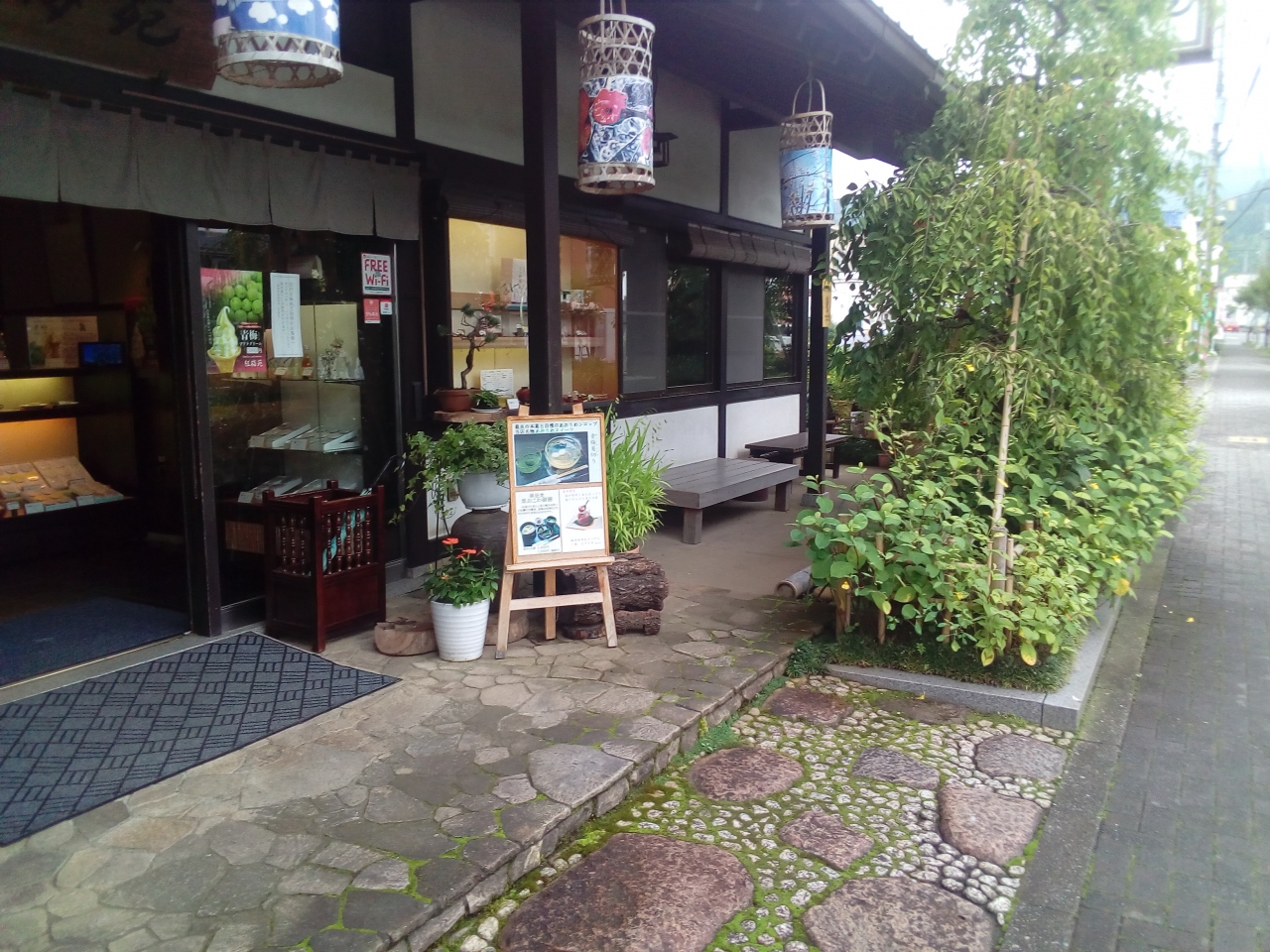 JR青梅線の日向和田駅から神代橋で多摩川を渡り、徒歩5分くらいです。昭和の文豪吉川英治ともご縁のあるお店らしいです。和の甘いものがたくさんありますが、個人的な私のおすすめは、梅のシロップがかかったソフトクリームです。