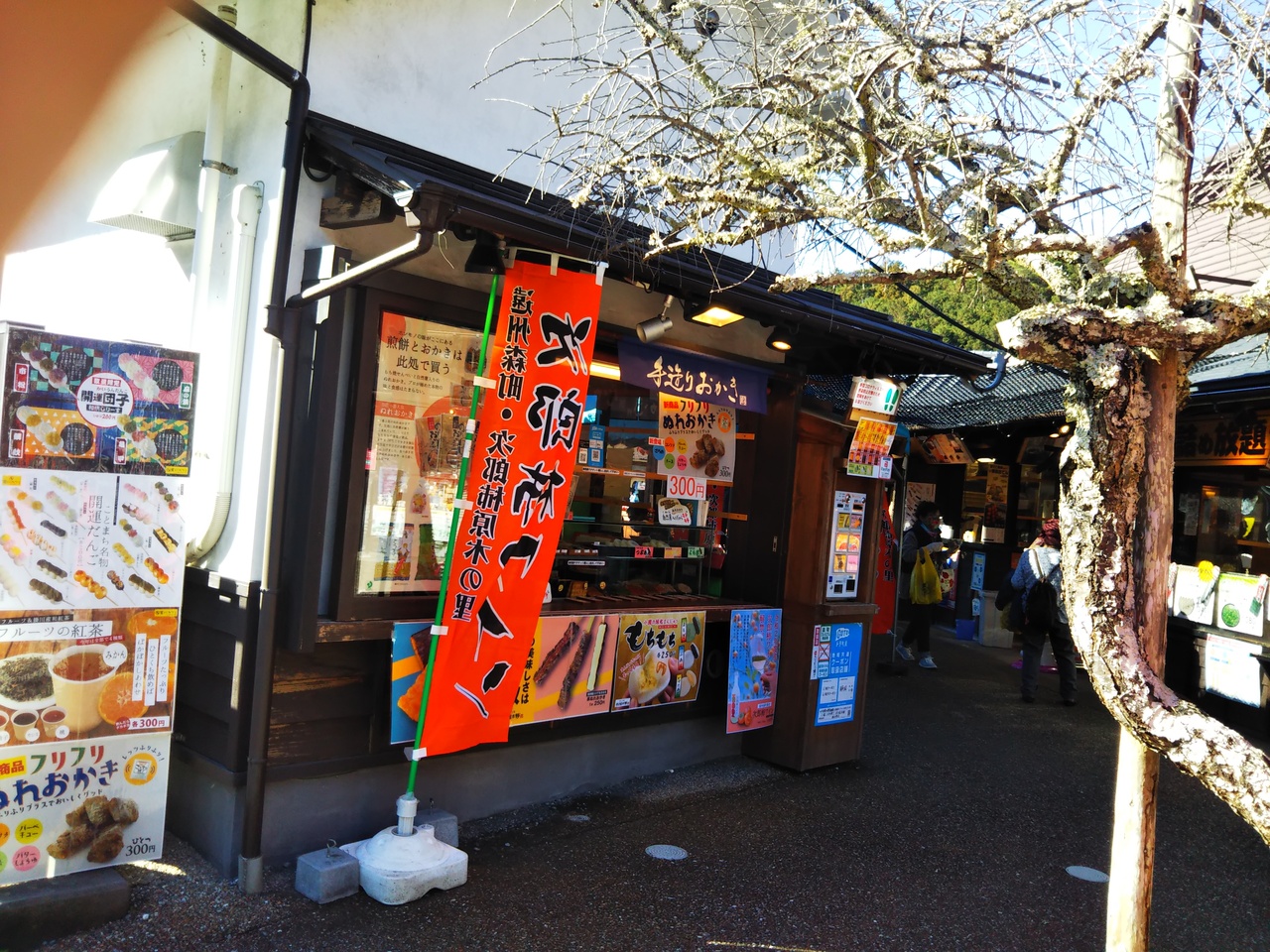 小國神社の駐車場の側にあり、参拝の後にひと息入れるのに便利です。