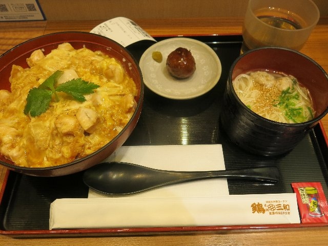 イートインコーナーがあります。香草美水鶏の親子丼、鶏そばセットをいただきました。梅干しor肉だんごが付きます。