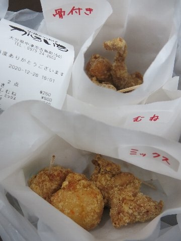 ミックスと骨付きのものを合わせて\1,000分(地域共通クーポン)をテイクアウトして、駅での電車待ち時間に食べました。