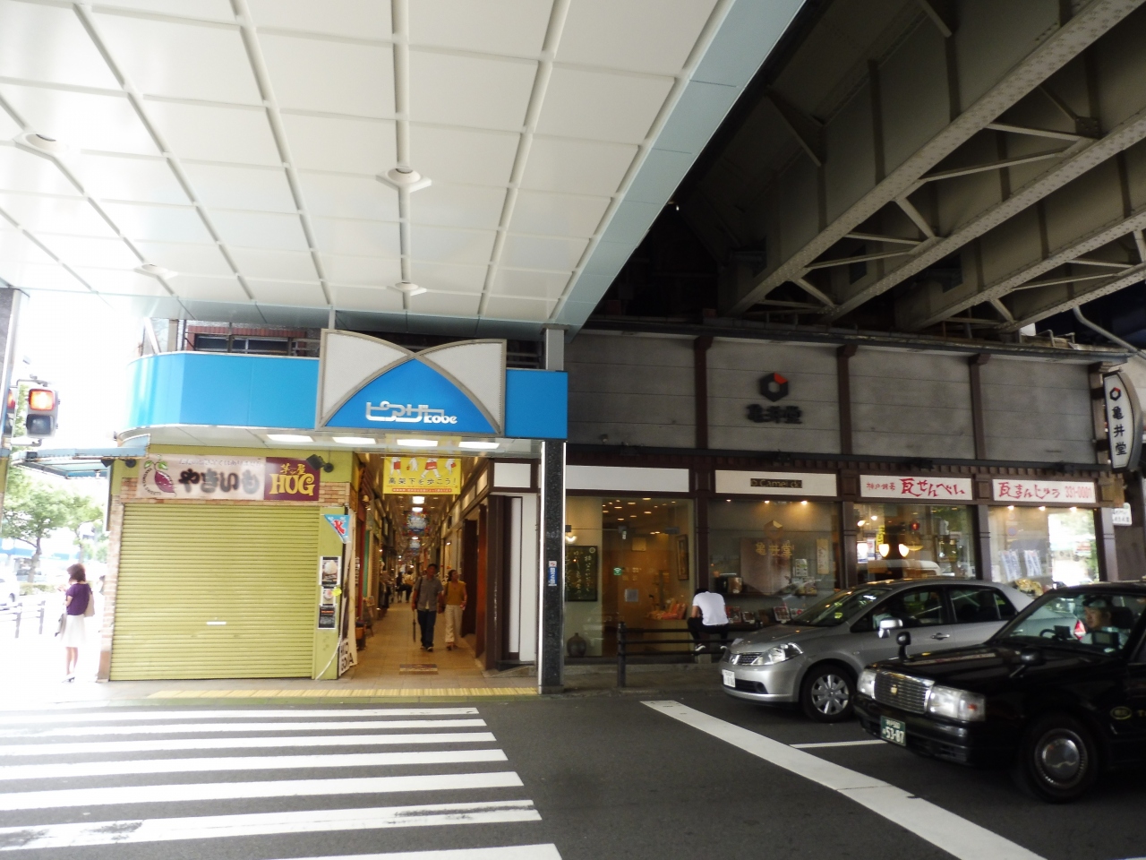 JR東海道本線(神戸線)と阪急神戸線の高架下の空間に有る趣深い商店街です。