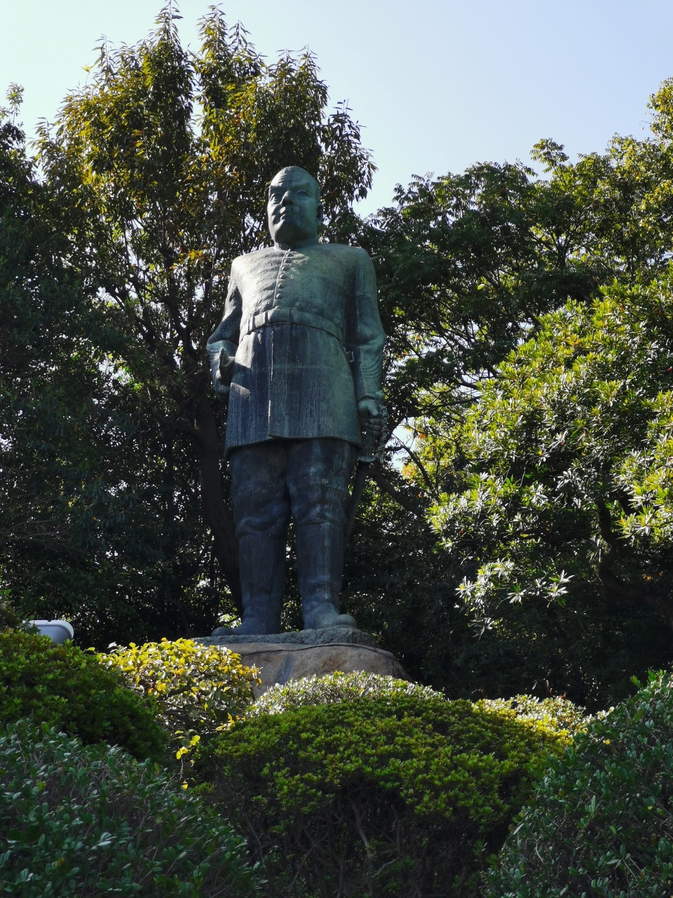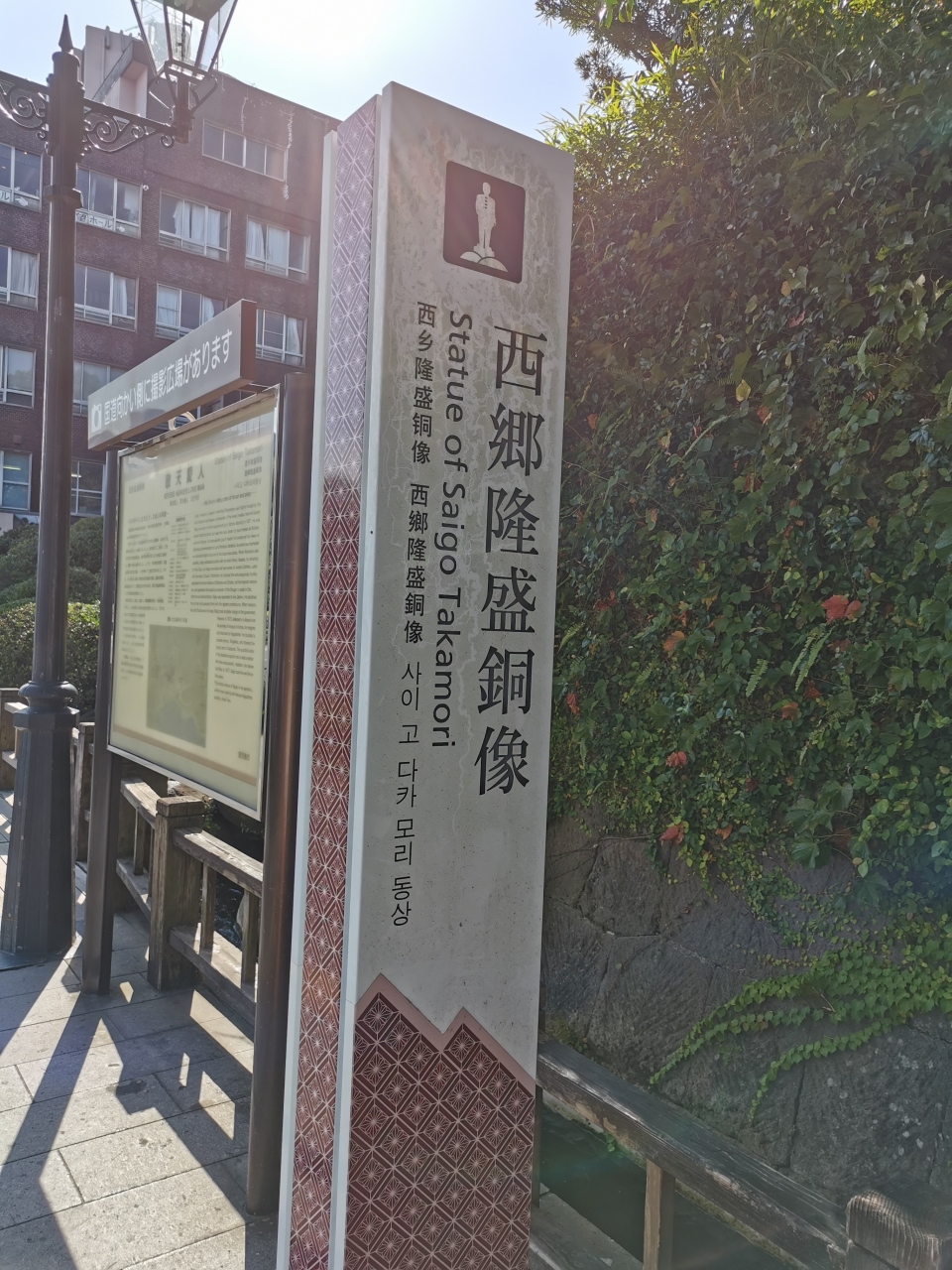 鹿児島・宮崎・熊本の南九州ドライブ旅行。鹿児島市内の観光。西郷隆盛銅像を見たいのですが近くに駐車場がない。歩いて5分ほどのコインパーキングを利用。国道沿いに西郷隆盛銅像があります。予想していたより大きくないですが立派です。写真を撮る方が多数でした。
