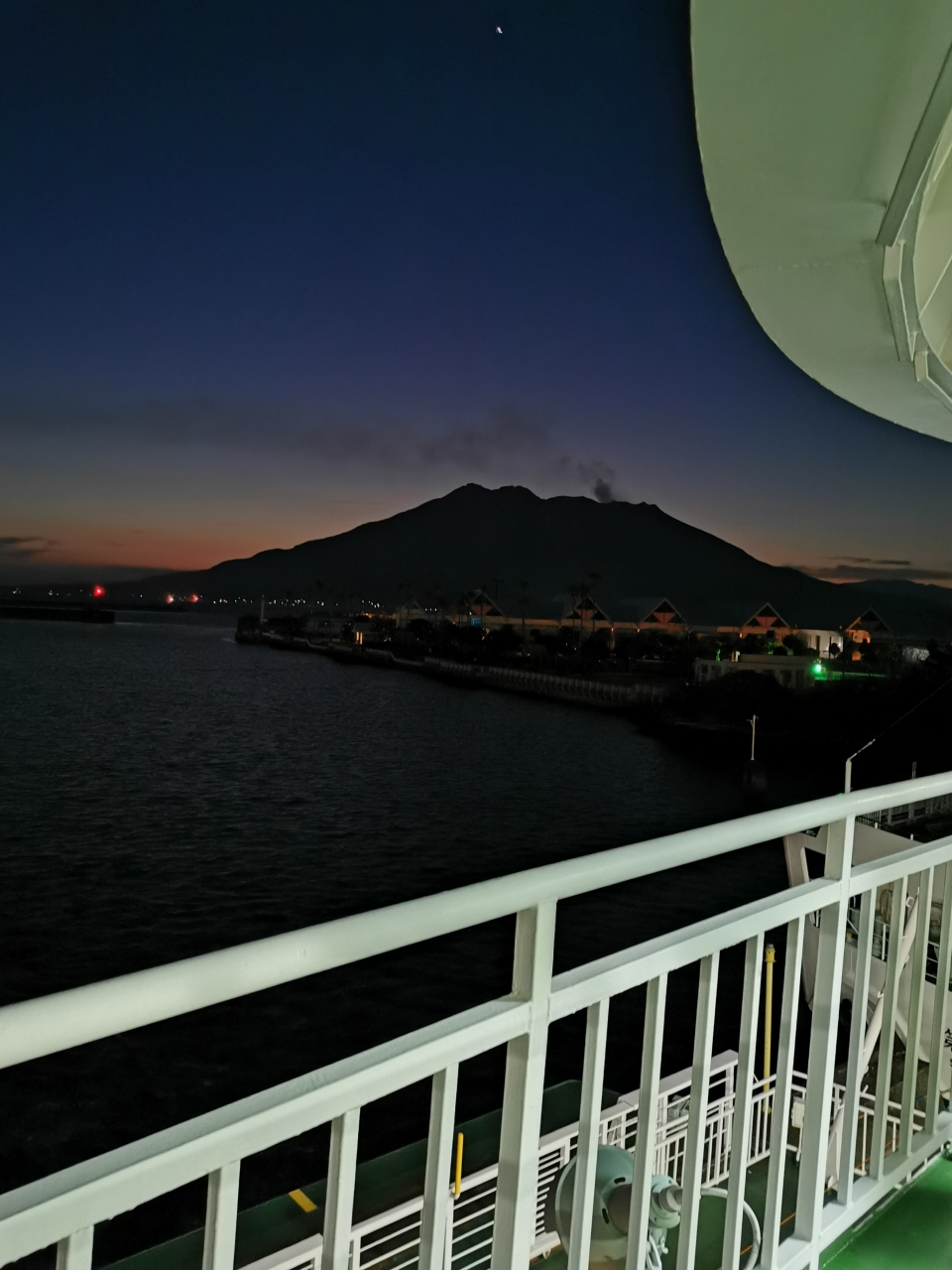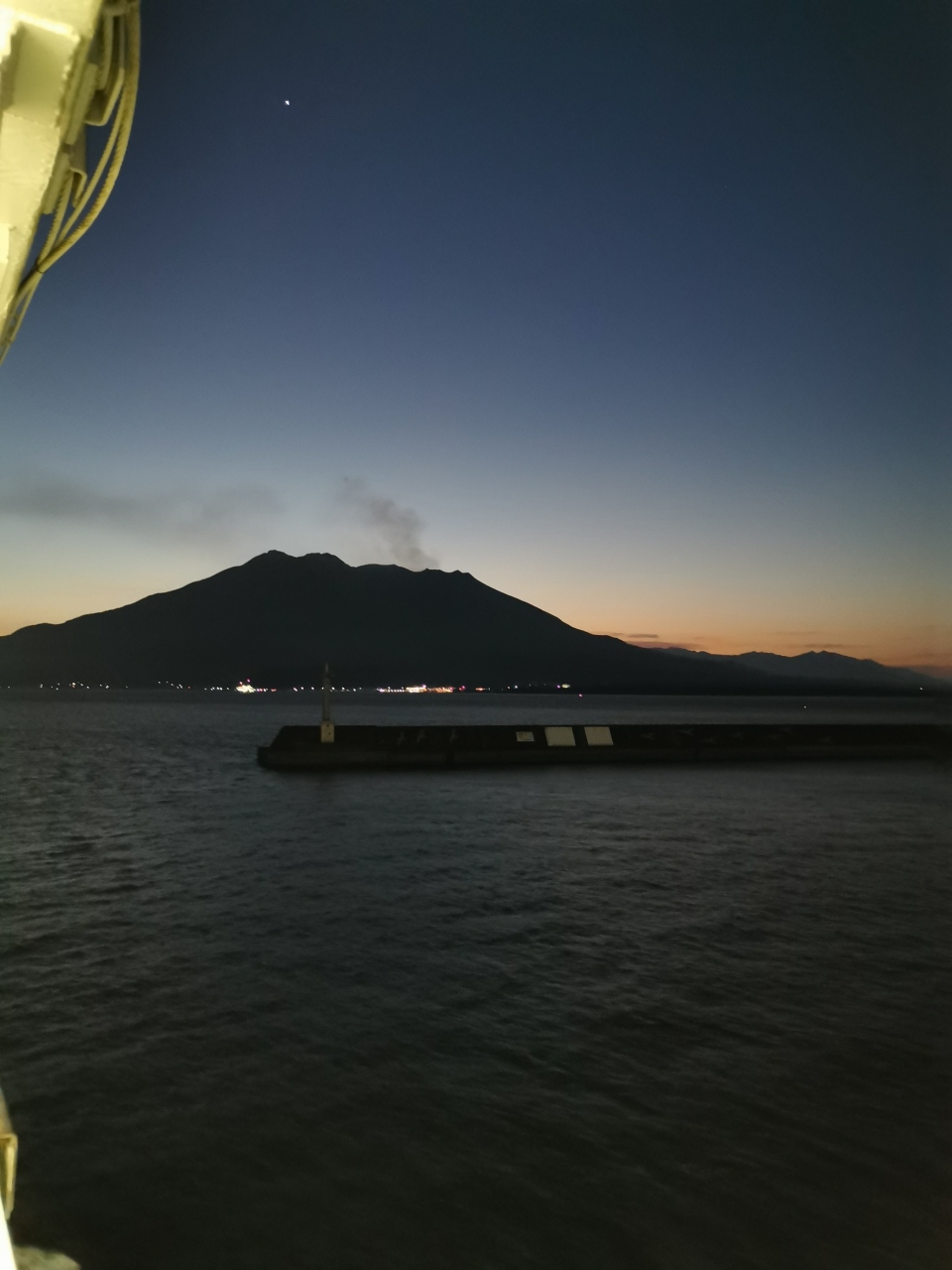 鹿児島・宮崎・熊本の南九州ドライブ旅行。鹿児島市天文館界隈に宿泊。早朝5時30分発の桜島フェリーに乗船し桜島から大隅半島を南下する予定。乗船料は後払いで桜島側でお支払いなので、列にならんで乗船するだけで簡単。短時間の乗船時間ですので乗りっぱなしの人も多いですが、せっかくですのでデッキへ。楽しみにしていた「やぶ金のうどん」は早朝は営業していなくて、とても残念でした。