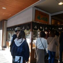 梅が枝餅を実演販売して売っており、人気店なのか購入のための行列ができていました。