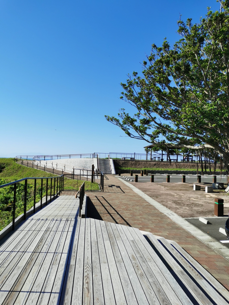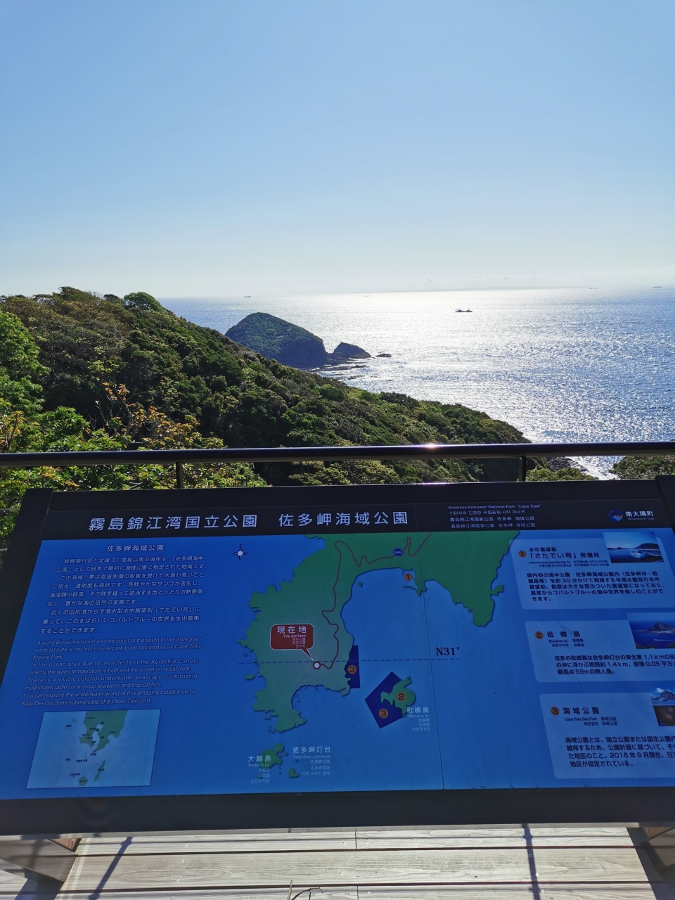 鹿児島・宮崎・熊本の南九州ドライブ旅行。早朝の桜島フェリーに乗船し桜島から大隅半島を南下する予定。桜島フェリーターミナルを出て国道を南下して佐多岬まで到着。良いペースで走行しても3時間以上かかりました。遠いです。周囲は南国気分です。駐車場は無料で広くて綺麗。展望デッキもあって南シナ海が一望できます。佐多岬はここから歩いていきます。