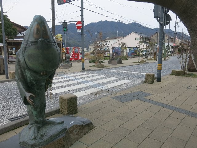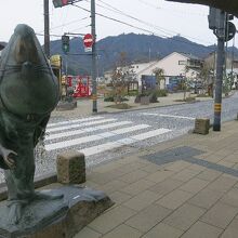 ブロンズ像として設置されているほか、様々なオブジェが配置されています。お土産やグルメのお店も充実しており、