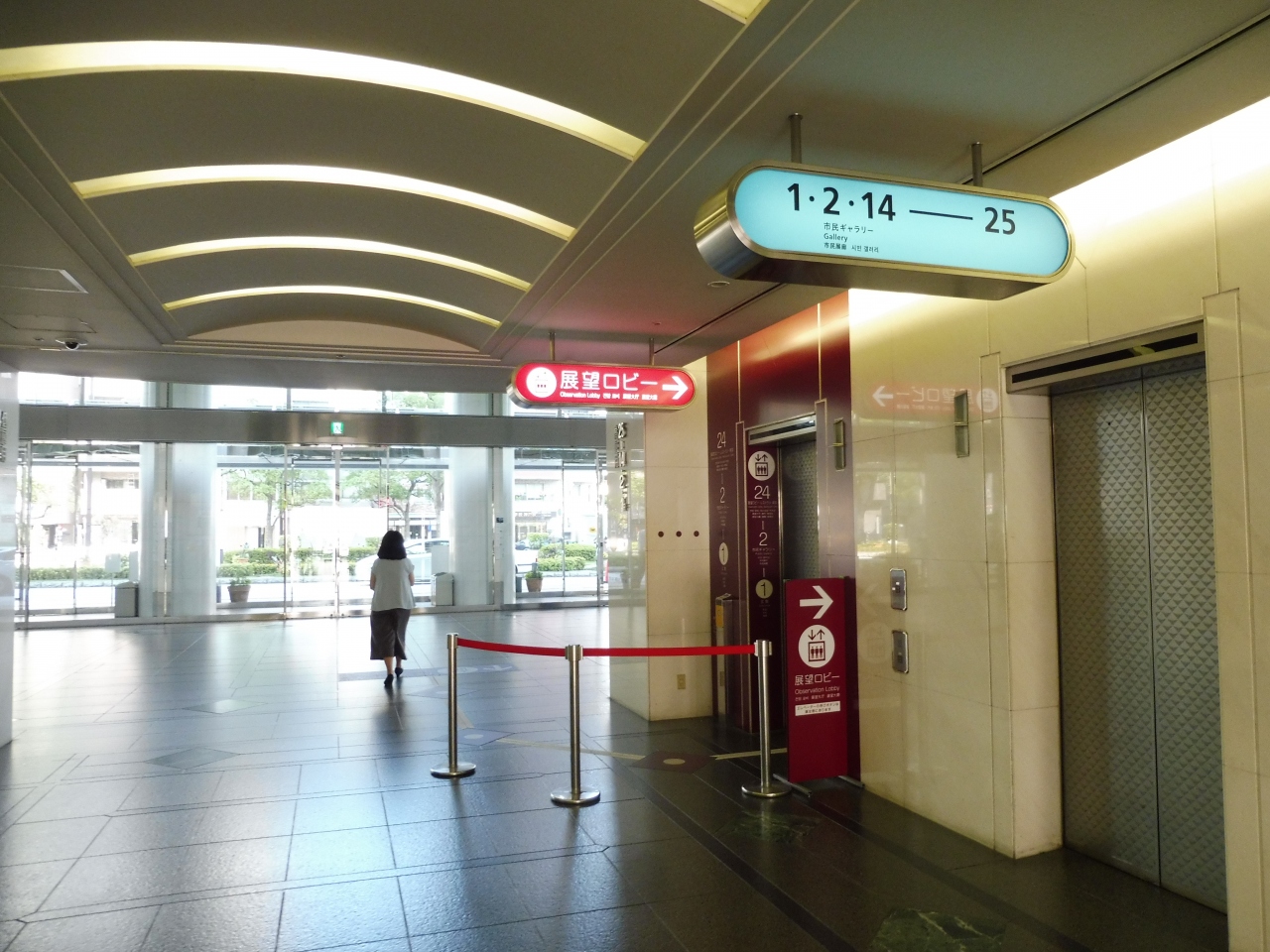 市役所なので多くのスタッフの方が日中働いてますが24階展望ロビー行きエレベーターにはちゃんと大きくサインが出ているので1階ロビーで迷う事は有りません。