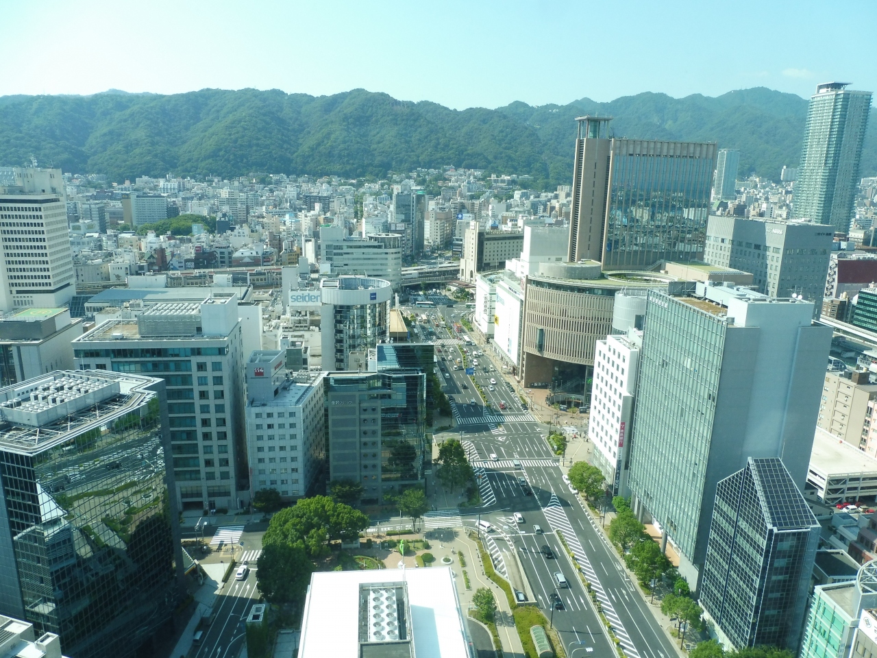 ロビーからは神戸港や北野エリアの異人館群更に先の六甲山脈迄見渡せます。