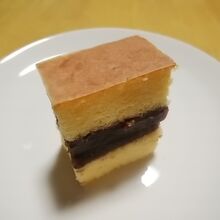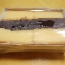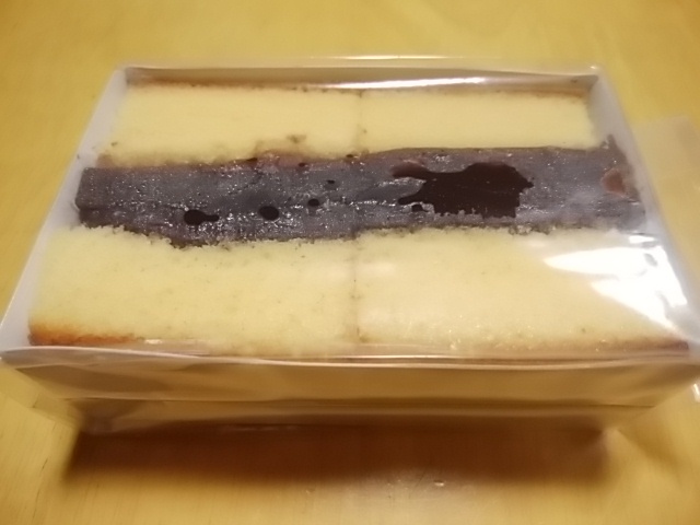1箱2切れ入り。とってもキメが細かいしっとり生地で羊かんをサンド。これ、美味しい!