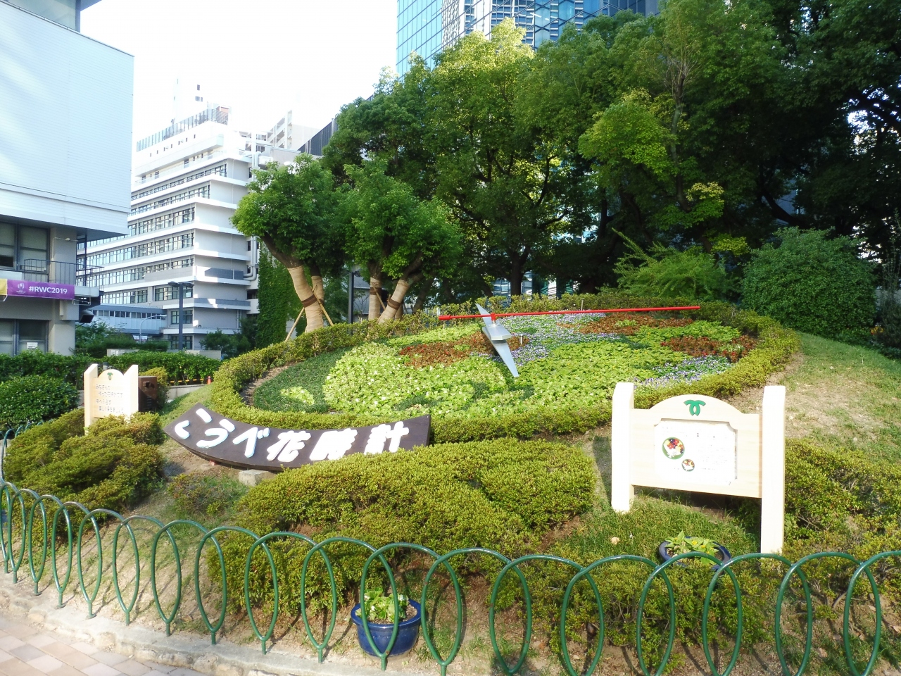 神戸市役所1号館北側(山側)の緑地帯の中に有る大型の神戸花時計です。