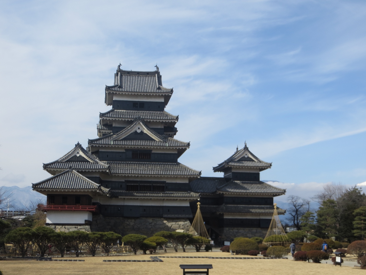 江戸時代に実際に使われた天守閣が現存する、松本市の象徴とも言える史跡です。天守閣は5重6階で全体的に黒く、周囲に存在感を放ちます。周囲は広々としており、様々な角度から天守閣を眺めることもできます。天守閣の中には鉄砲などの史料が展示されており、最上階からは山々を背に松本の街並みを眺めることができます。