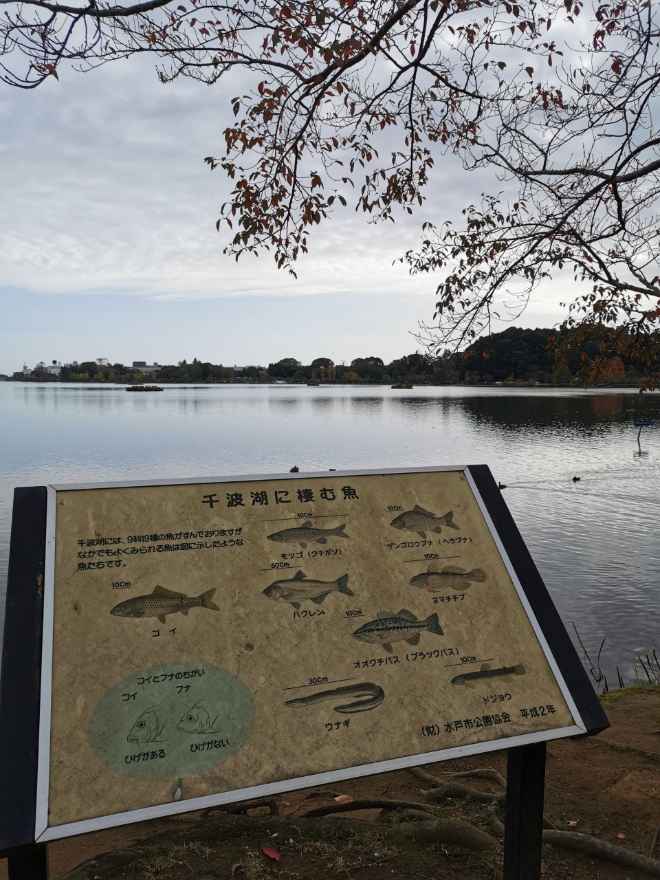 水戸界隈のドライブ旅。偕楽園の近くにある淡水湖。千波湖の近くの有料駐車場に車を停めて、サイクリングしました。湖の周りは一周できる自然豊かな空間になっています。水戸市民が多くジョギングや散策をしていました。こんな場所が近くにあると良いなと思われる場所です。
