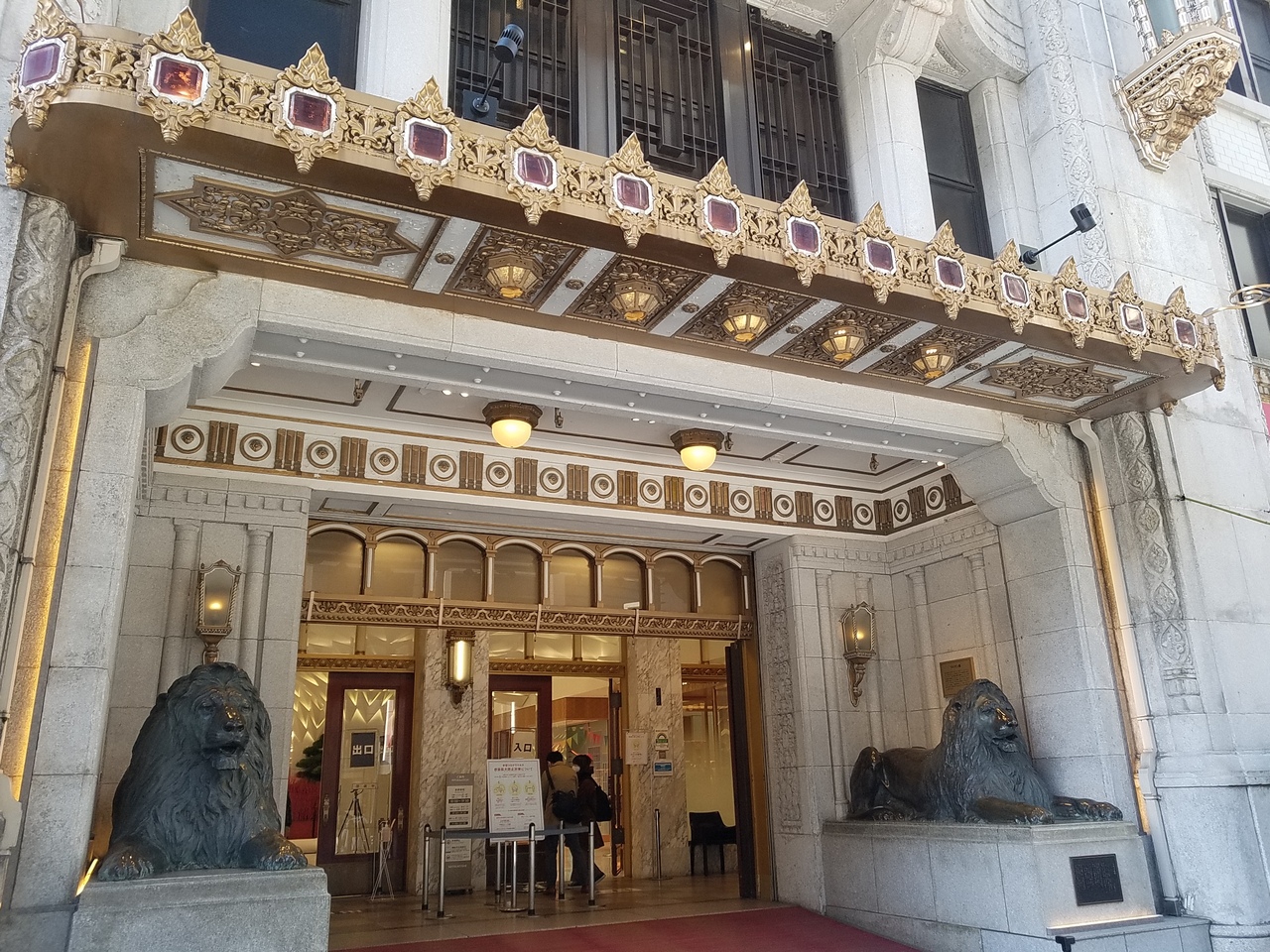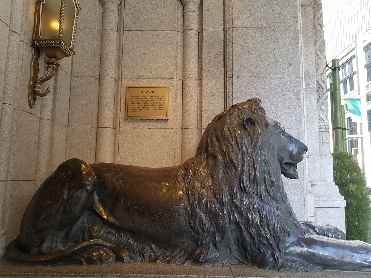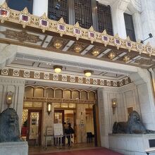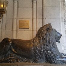 正面玄関で出迎えるライオン像