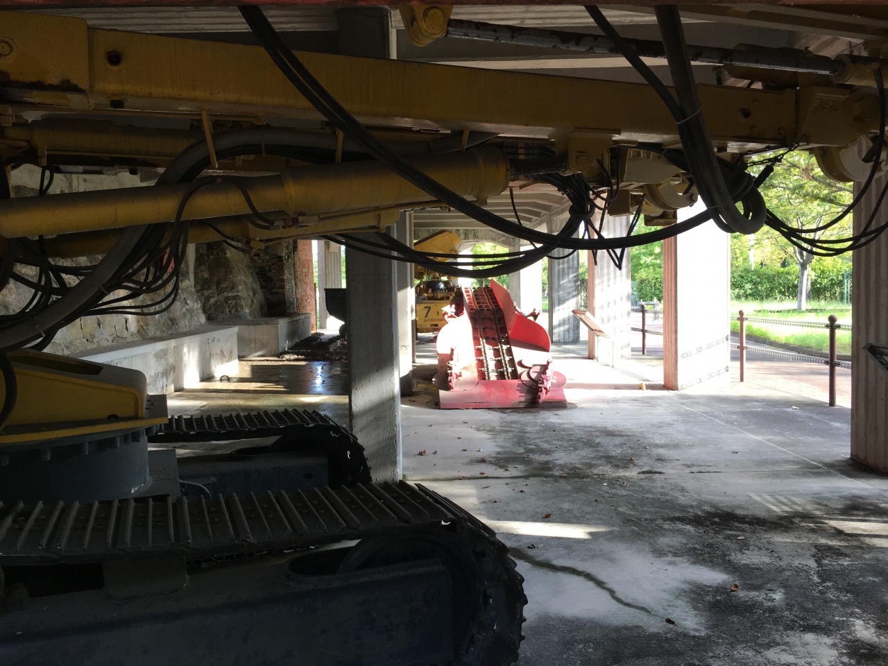 抗口跡はセメントで閉じられているが、「炭坑節」に歌われた高さ31mの赤煉瓦の煙突だけは昔のまま残っている。煙突の他にも斜坑に抗夫を運んだ人車や坑内の石炭掘削に使われた機械類が静置展示されている。