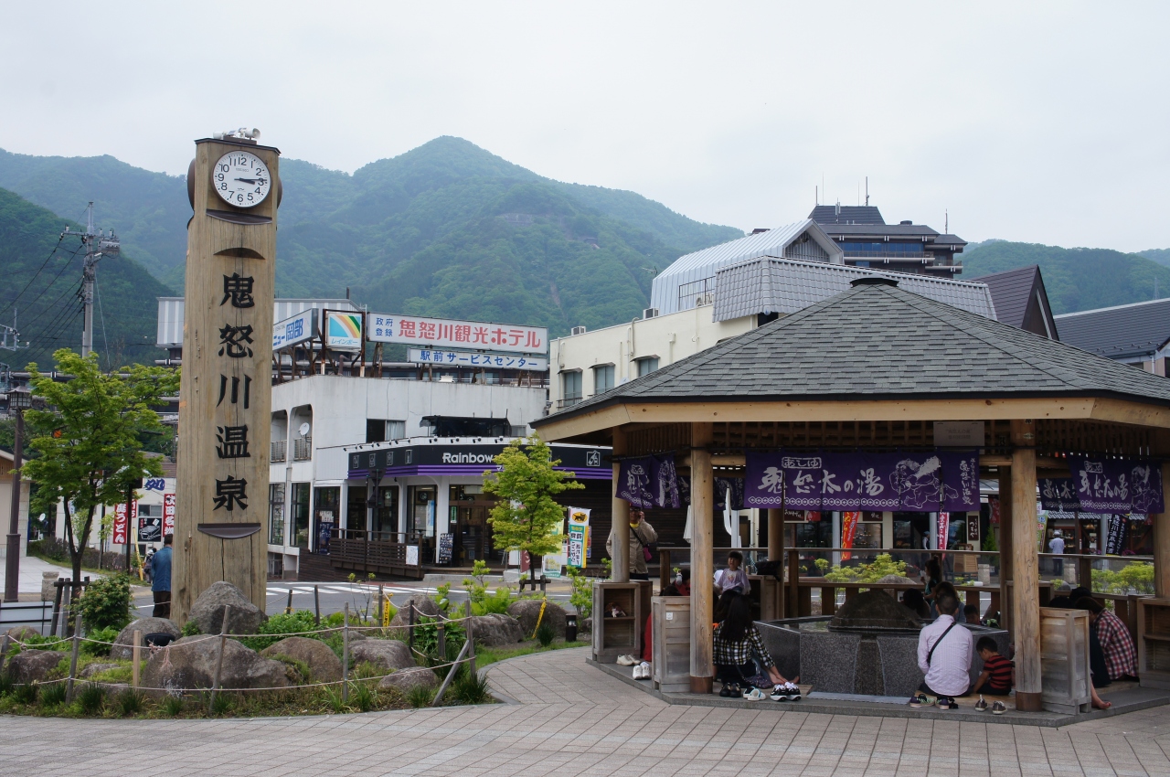 鬼怒川温泉駅の駅前の広場にある足湯です。誰でも自由に利用できるので、電車までの時間があまっている間に少し利用しました。「鬼怒太」というのは鬼怒川温泉のキャラクターなのだそうで、同じ広場には 鬼怒太の像もありました。