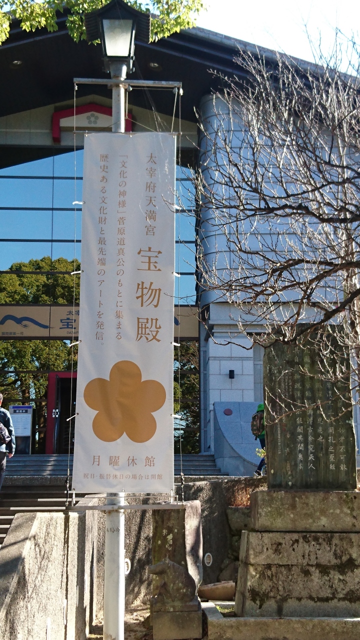 太宰府天満宮の広大な境内の一角に、菅原道真が使っていたといわれる龍牙硯や佩刀毛抜形太刀、御真筆と伝わる「五言絶句」の掛け軸などおよそ5万点を収蔵している宝物殿がありました。以前入ったことがあるので今回は入りませんでしたが、入館料400円で貴重な品々を見ることができるのでお勧めです。