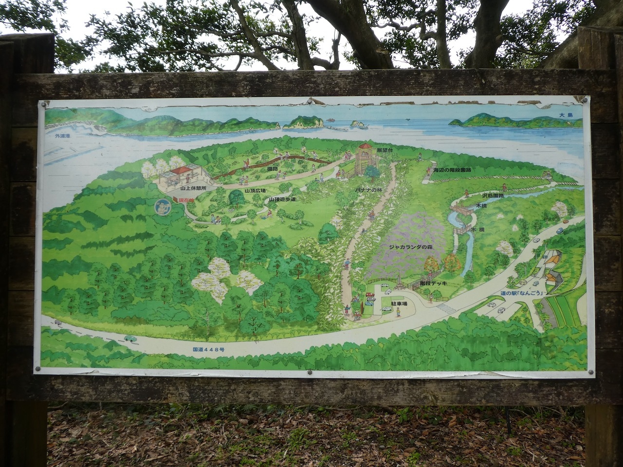 亜熱帯植物園の中にる道の駅。トイレ休憩と買い物だけではもったいない。裏山全部が植物園なので、ちょっと散歩してみましょう。高低差があるのですが、山頂まで車で入れますし、駐車場もあります。見晴らしのよい展望台も何ヶ所か。