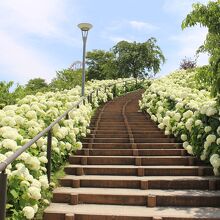 アナベルという白いアジサイがこの公園の一角に咲いていて、別世界のようでした。