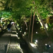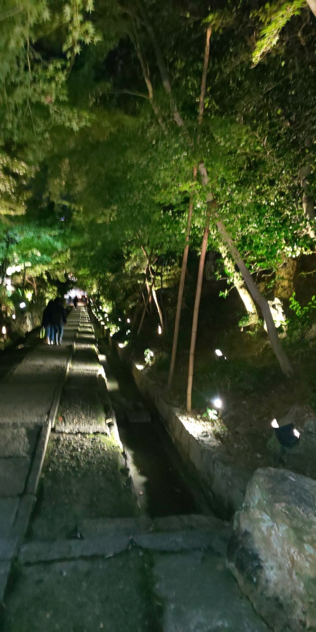 高台寺脇にある、ねねの道です。豊臣秀吉の正妻ねねが余生を送った場所として知られています。高台寺に続く石の階段で、夜のライトアップもされていました。