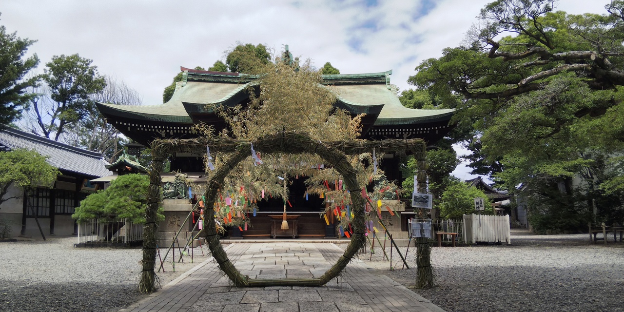 住吉大社から100メートルぐらい北側に歩いたらありました。季節柄、夏越の大祓 茅の輪くぐりがありました。境内には樹齢500年以上のモチノキが植えてあり、なかなか雄大な感じがしました。静かでなかなか良い雰囲気でした。