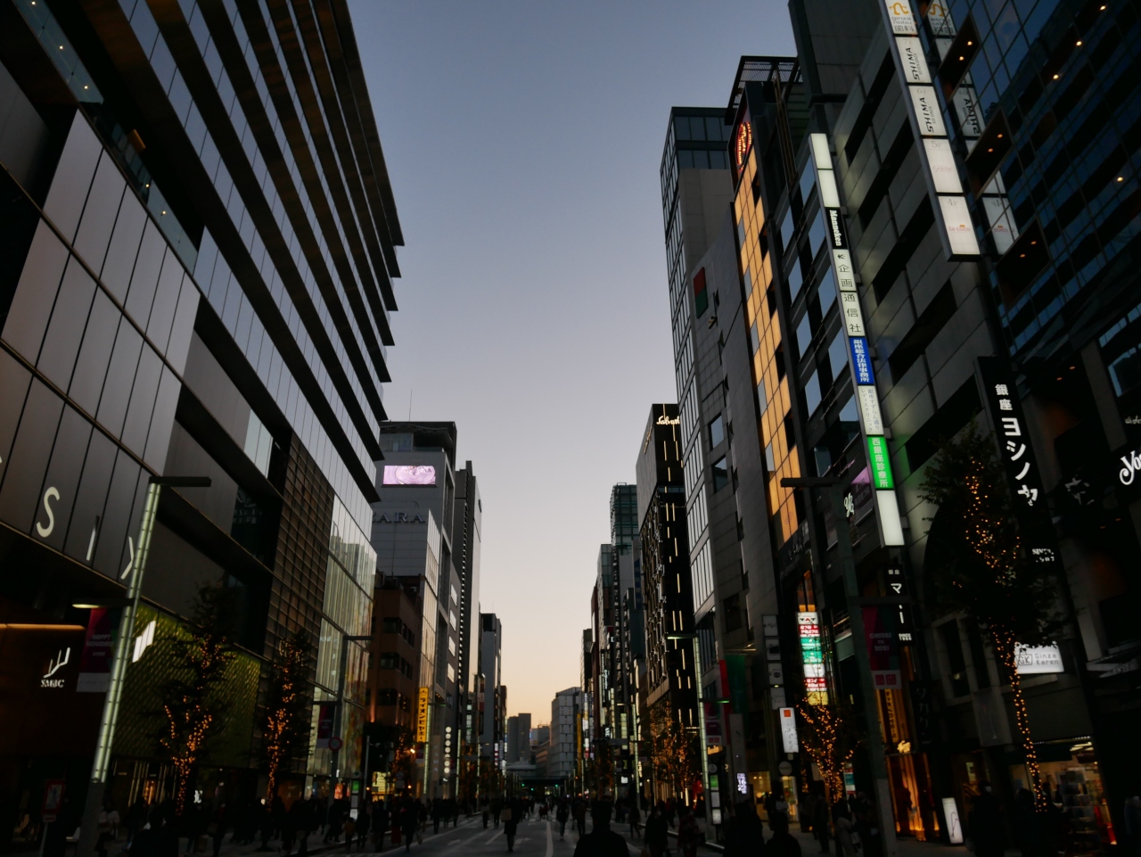 銀座のメインストリート。昼間は歩行者天国になっており、普段はとても人通りが多いところですが、コロナ禍のためか心なしか少なめでした。
