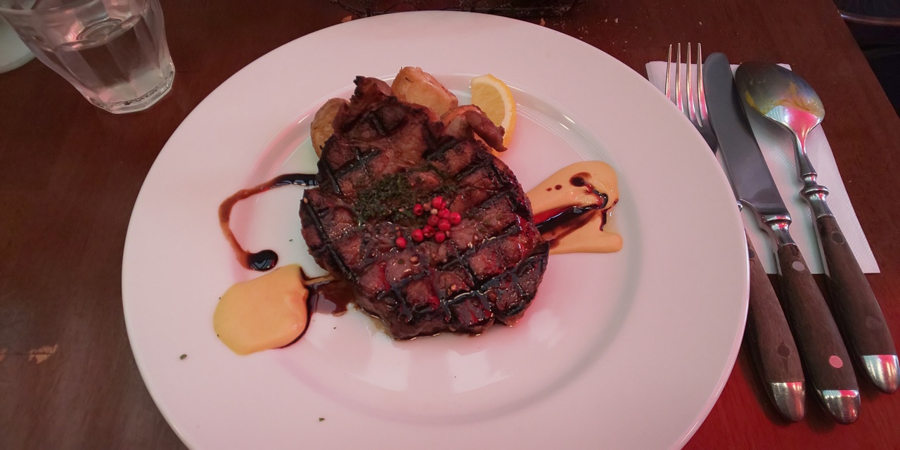 前菜をスープ、メインを豚のグリルにしました。ちょっと豚が焼きすぎで、焦げていたのが残念。ですが、デザートとドリンクも付くので、満足度は低くないです。