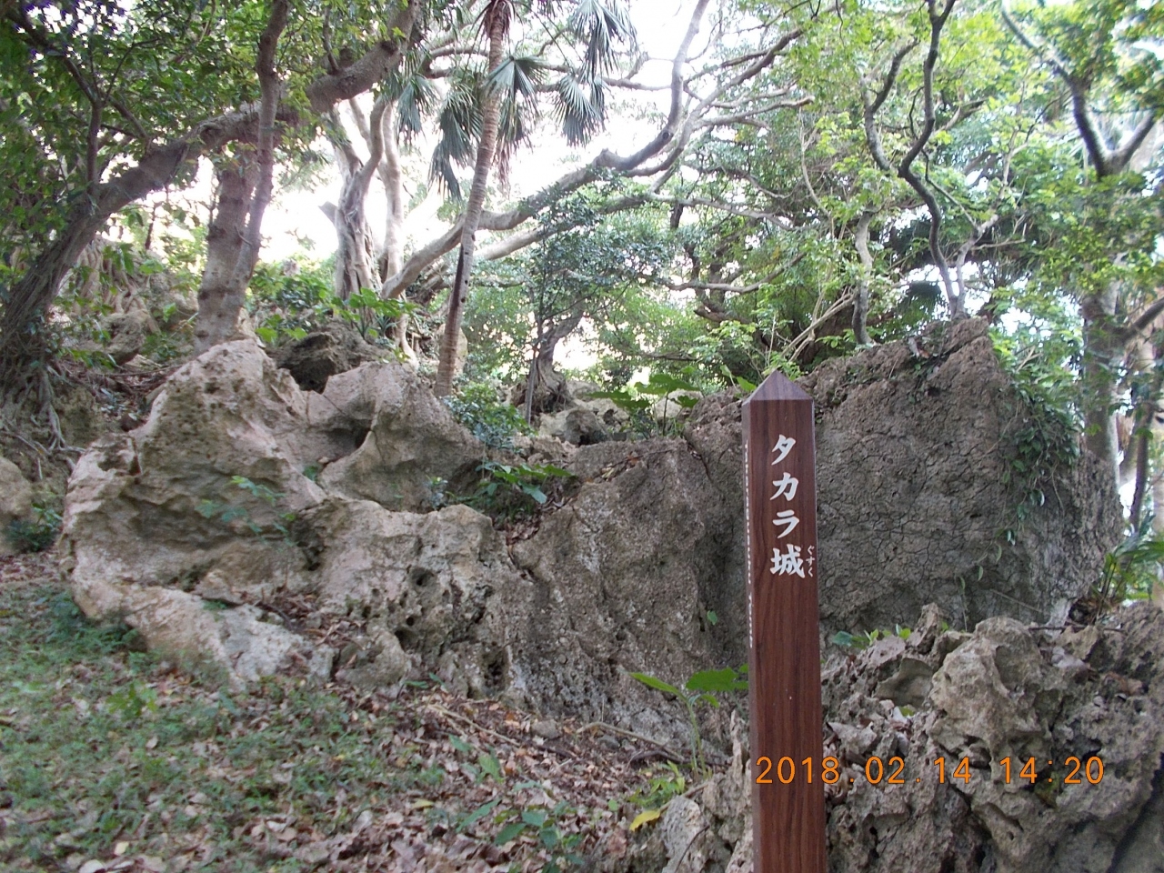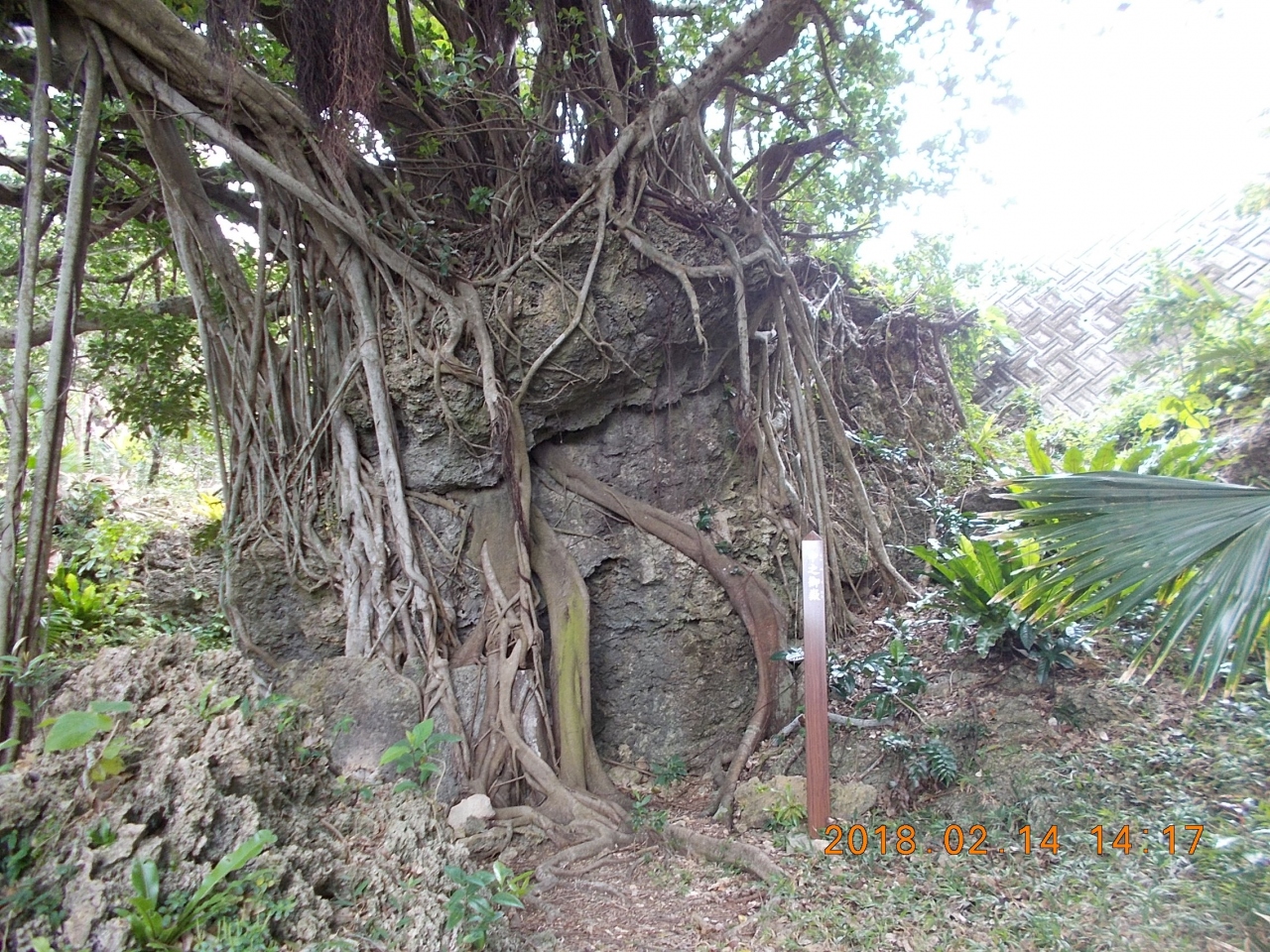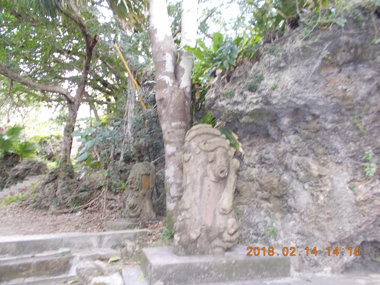 車で南城市の知念岬から那覇に戻る途中で寄った。短い橋を渡って島に入る。駐車場に車を止めて奥武観音堂まで歩いてから玉城按司の墓や殿(とぅん)等を見て回った。また森の中では中之御嶽やタカラ城などを散策した。駐車場では猫が非常に多かった。