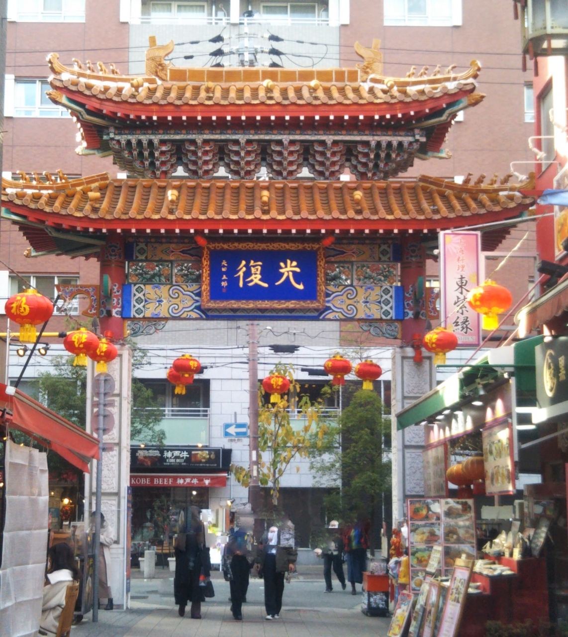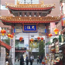 神戸・元町の南京町中華街の西側入口にある大きな門です。元町パークロードから南京西路に入るところに建っています。白い彫刻のある大きな柱の上に美しく装飾された2層の屋根がのった形の門です。入口側には「西安門」、中側は「光復」の文字が刻まれてます。