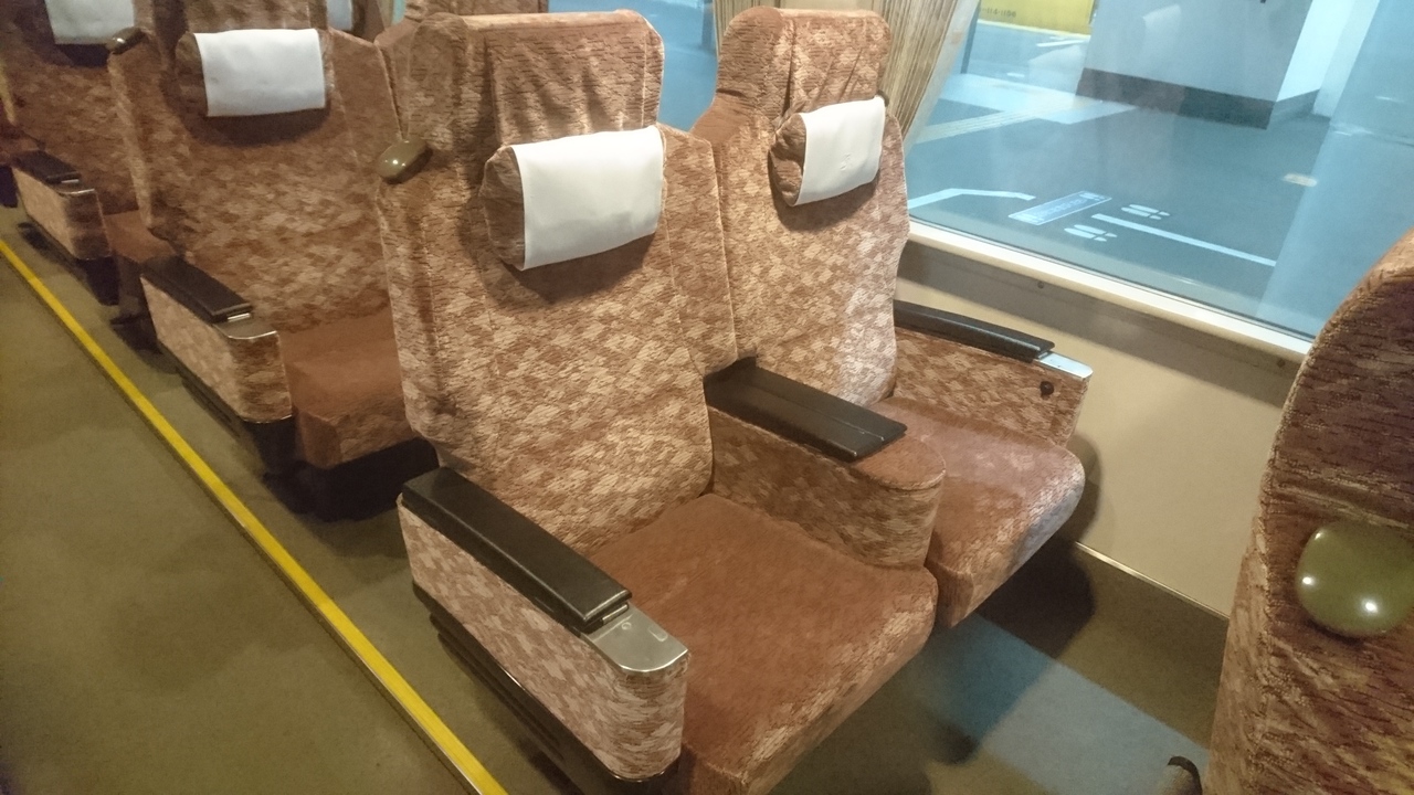 島根に向かうため岡山駅から特急やくものグリーン車に乗りました。特急やくものグリーン車は電源コンセントは無く、背面テーブルもありません。収納テーブルはありますが、そのテーブルは小さく使いづらいです。景色は良いところもありますが全体的にはイマイチでしった。
