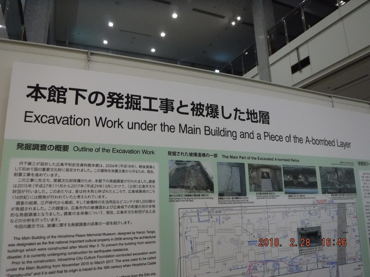 原爆が投下される前後の広島の様子や原爆で被災した人が着ていた服などが展示されている。特に原爆の悲惨さが伝わる写真や絵が数多く展示されているとともに、ビデオ証言なども充実していた。また、広島のその後の復興の様子も解説されていた。