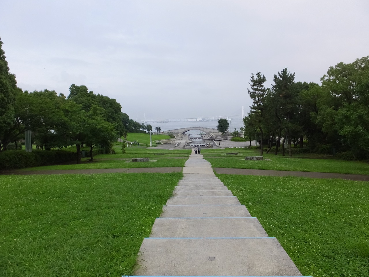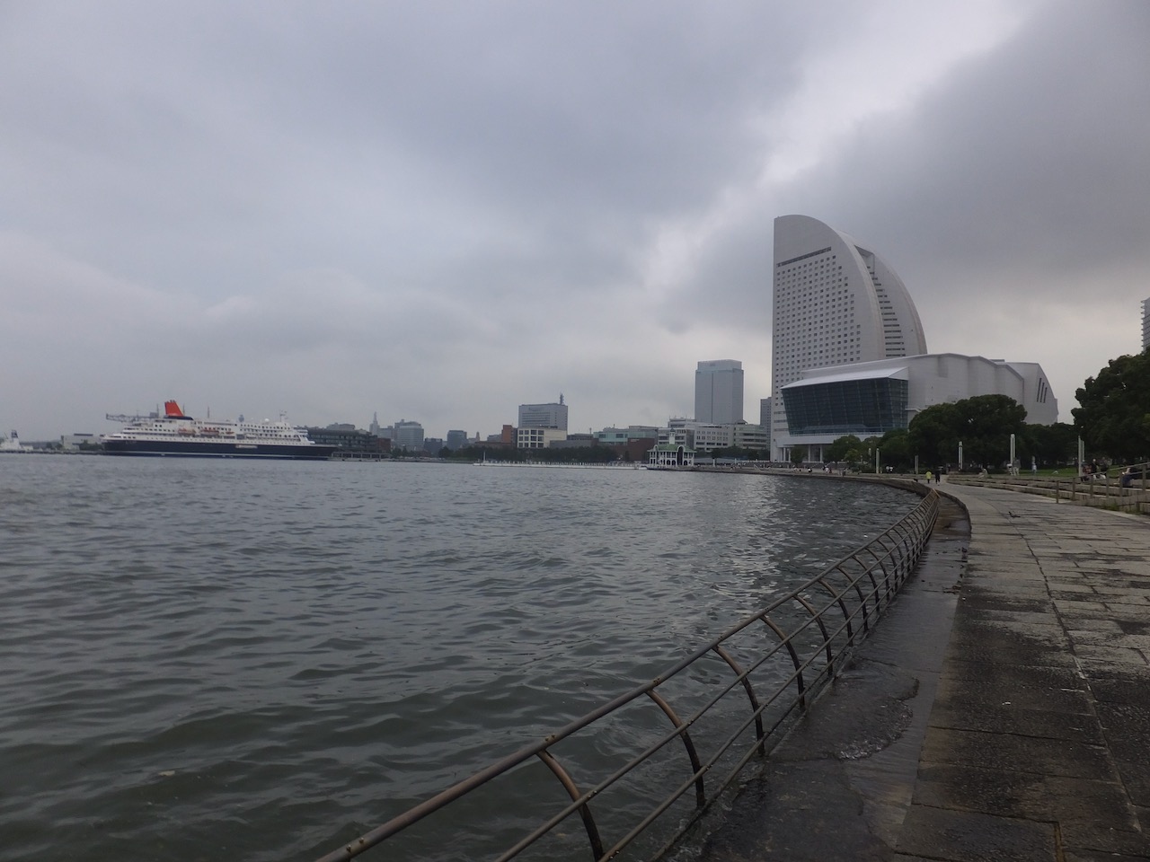 観光客よりは海釣りの人や地元の散歩やジョギングの人が目立ちました。パシフィコの端っこから長い園路で波打ち際まで10分かかりました。広いです。入り江のような人工池の上に橋がかかってますが、水の入れ替りがないのか淀んでゴミだらけでこのへんはいやなイメージですが、波打ち際まで来ると港の景色を一望に。波打ち際は柵があるものの海に触ることもできるくらい低いです。ハンマーヘッドにとまっている客船が遠いですがよく見えます。ときどき海面高くさかなが飛び跳ねます。ゆったりした時間が流れます。とくに目的もなく散歩するにはおすすめの公園でした。