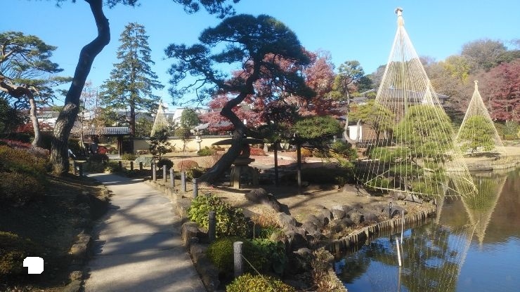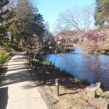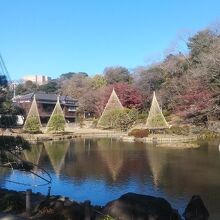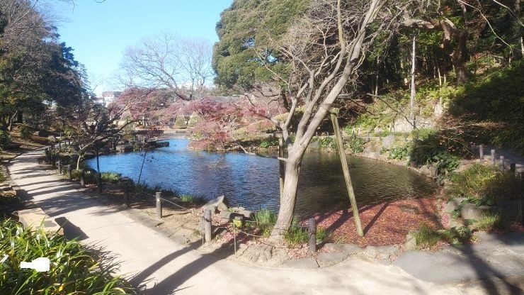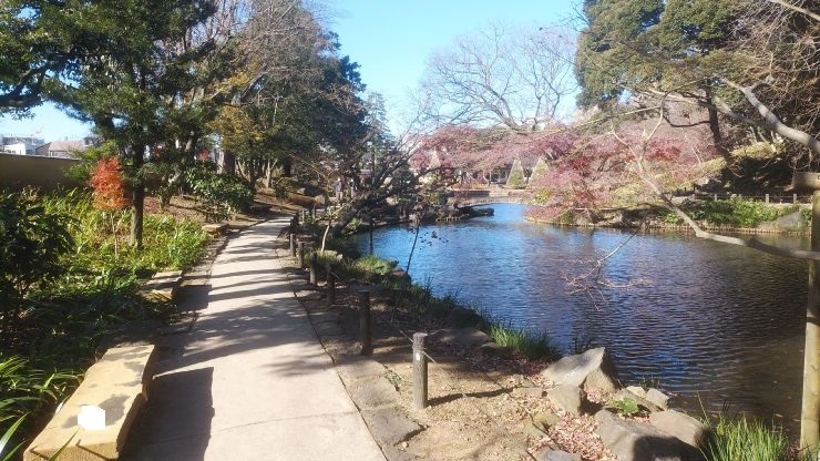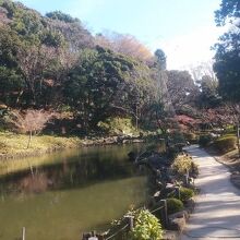 無料で散策を楽しむことができ、池を中心とした回遊式庭園になっている。周囲は高い建物も少なく、起伏のある地形で緑も多いので、落ち着いた雰囲気があった。木々の色づきも良く、都会にいながら自然環境を楽しむことができた。