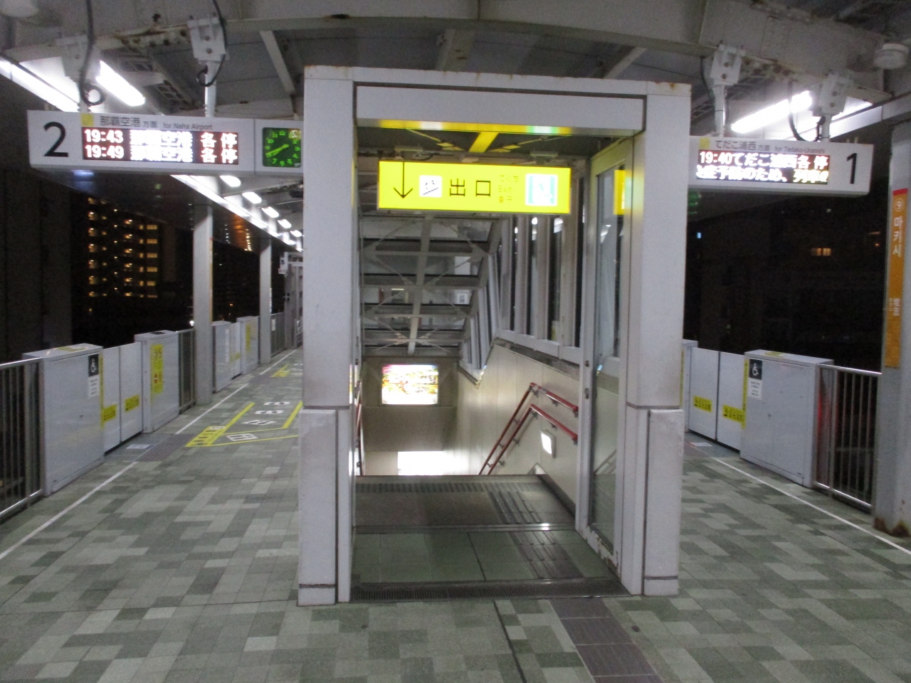 ゆいレールの駅で前後の駅は美栄橋駅と安里駅です。国際通りの北側の入口にある駅で、買い物客や観光などで利用するのに便利でした。ゆいレールの駅共通で言えるのは、地上から駅改札口まではエレベーターやエスカレーターが設置されていますが、改札口から駅ホームまでは上りはありましたが、下りのエスカレーターが設置されていなかったようです。