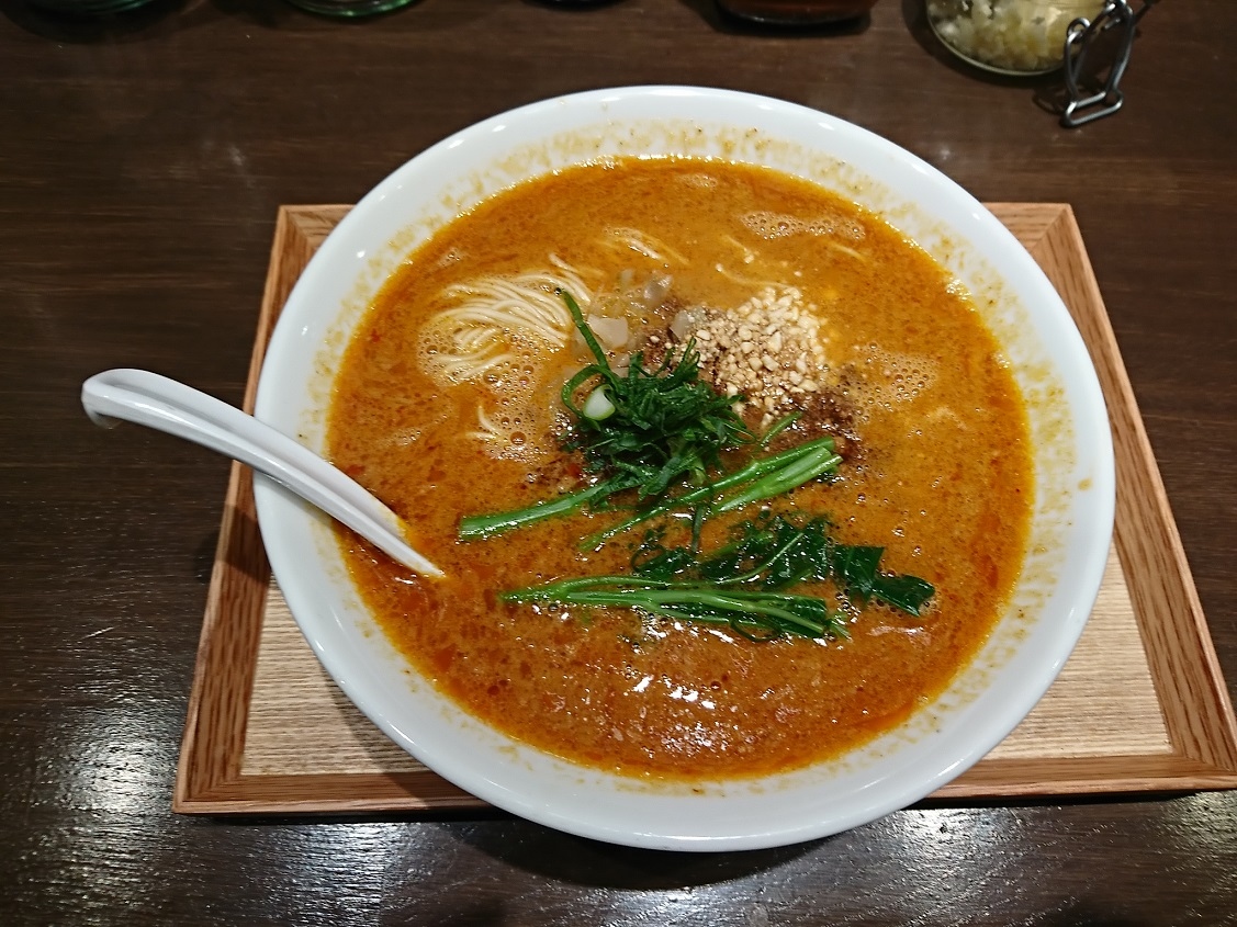 池袋駅東口にある担担麺専門店です。夕食で汁あり担担麺をいただきました。痺れと辛さは共に5段階で花椒や唐辛子の量で調整していて、この時は痺れ4辛さ4を注文。痺れや辛さがあり、汗びっしょりになりながら完食。確かに唐辛子の辛さや花椒の痺れは感じたものの、旨みが少なかったような印象を受けました。