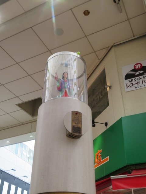 サンモール1番町にあります。からくり時計ってどれだろうと思って、商店街の方に聞いたら、何か所かあるそうです。2つ見つけたとこで探すのやめました。キャラクターも昔風で動かないのでつまらないですね。せめて動かしてほしいです。
