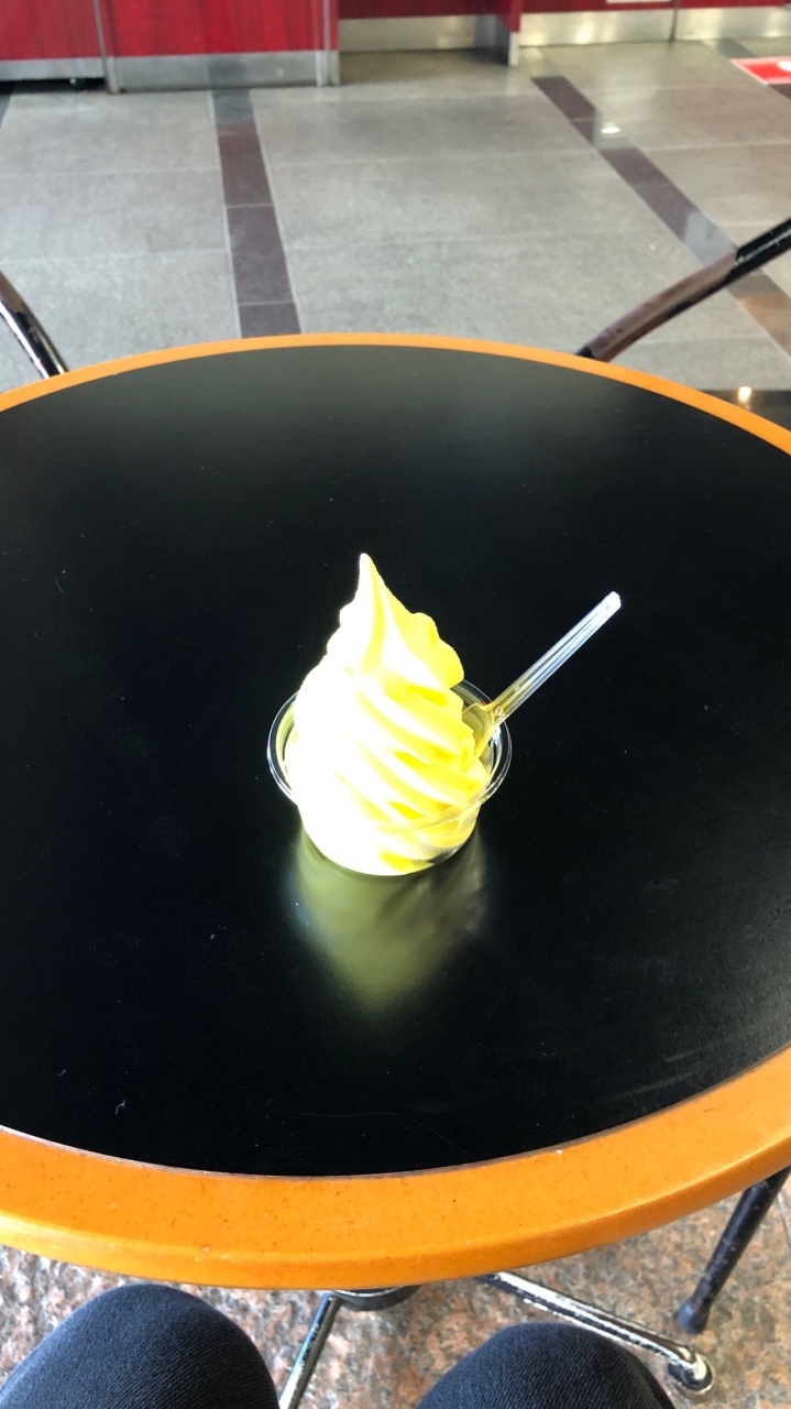 首里城公園内の、首里杜館(観光案内所のような施設)にあるカフェです。窓側の席からは、那覇市内や海の景色が見られます。シークヮーサーソフトクリーム400円を食べました。シャーベットのような食感と、果汁のしっかりした味がおいしかったです。430円のゴールデンパインソフトクリームも気になります。