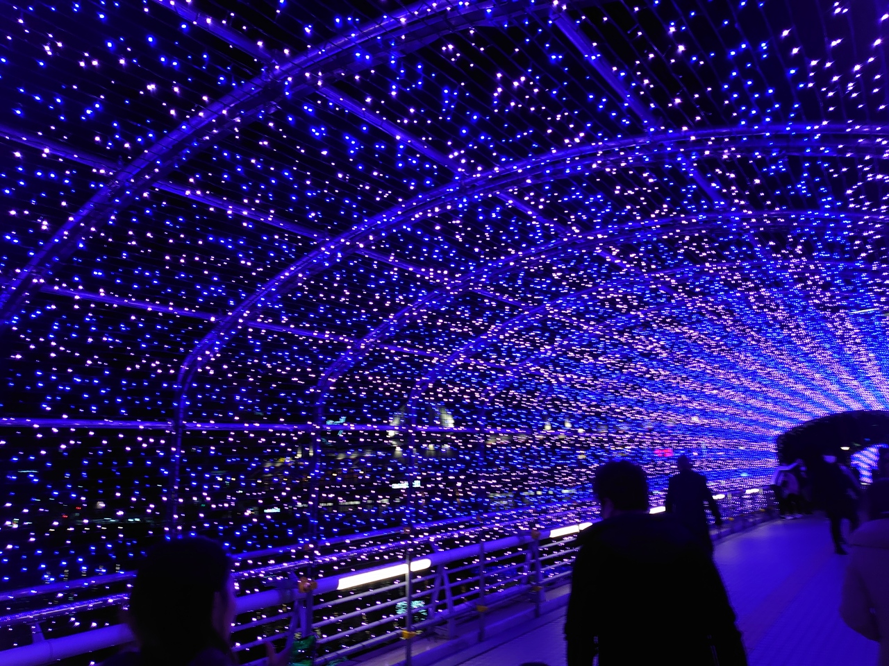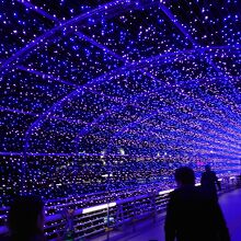 すっぽりと光に覆われて、幻想的な雰囲気に包まれています。多くの人でにぎわい、橋を行き交っていました。