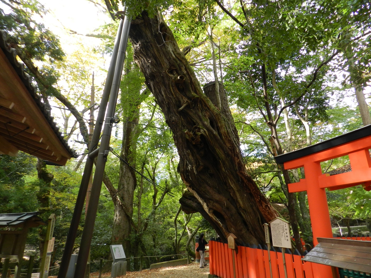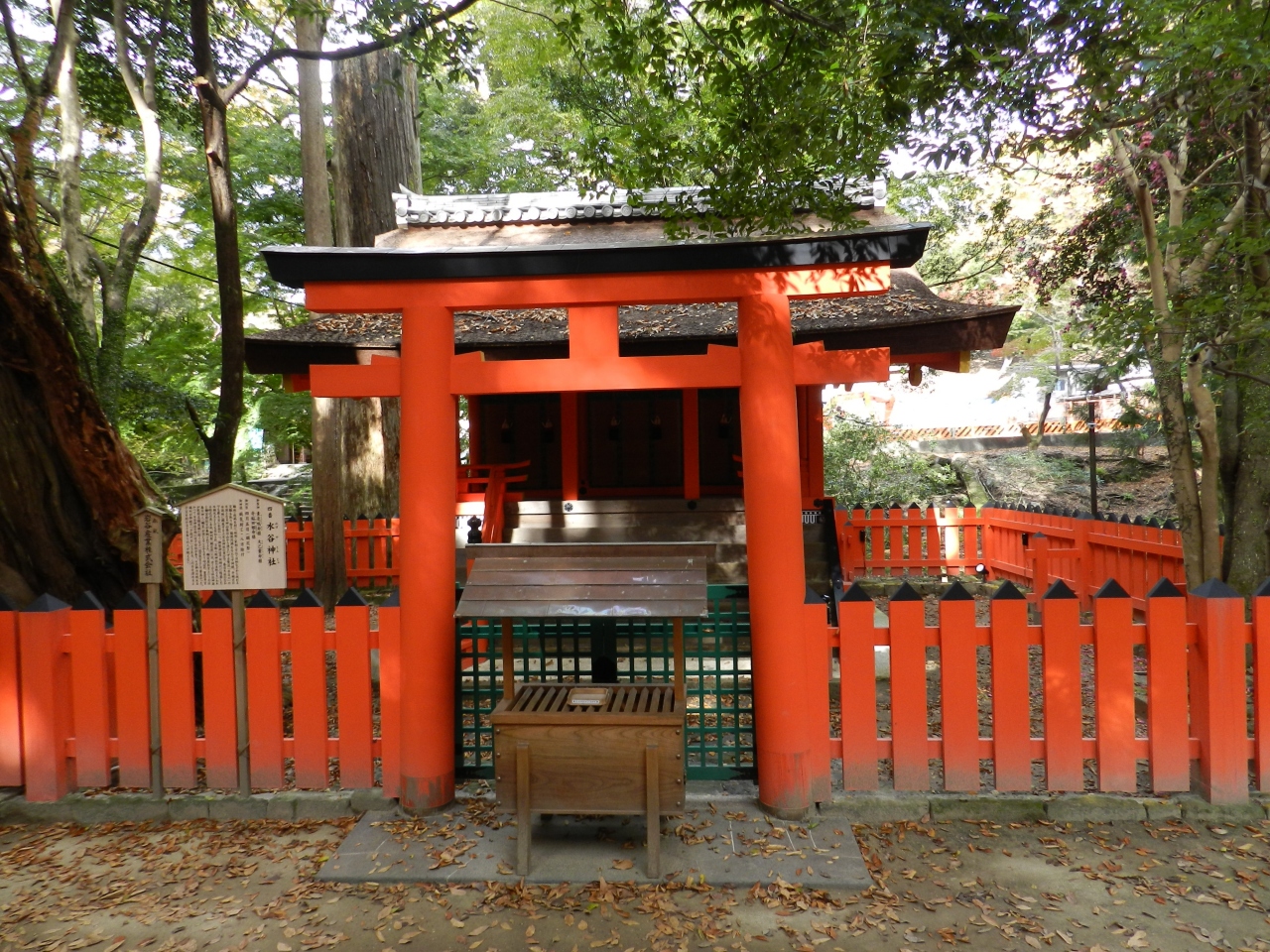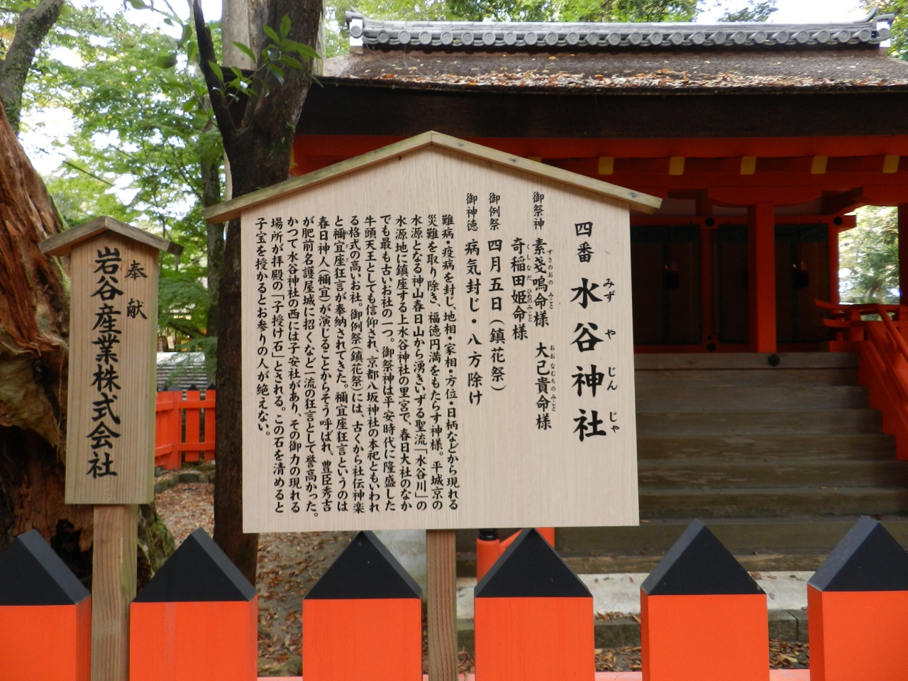 世界遺産「春日大社」の境内北端に鎮座する神社で春日大社の境内末社です。春日大社本殿から北へ徒歩5分程の若草山と春日山の間を流れる水谷川の畔に鎮座しています。末社の中では比較的大きな社を構えて子宝の神としても信仰を集めています。鬱蒼とした森に覆われた場所に建つ神社で昼間も薄暗く傍には高さ12mのイブキの古木が生えています。